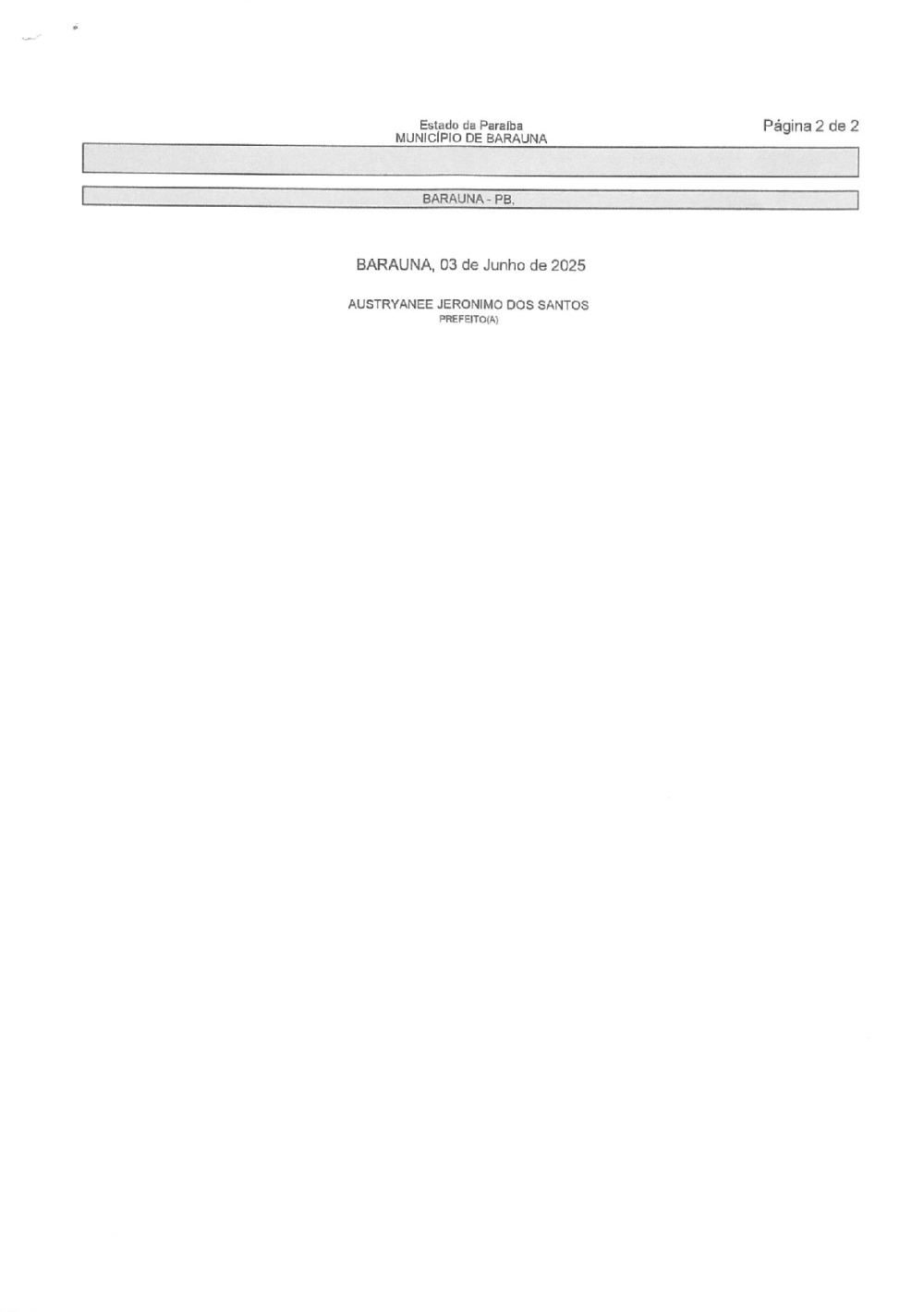 Conforme MP n° 2.200-2 de 24/08/2001, que institui a infraestrutura de chaves Públicas. Matéria Publicada no Diário Oficial do Município de Baraúna/PB no dia - Edição 01399.