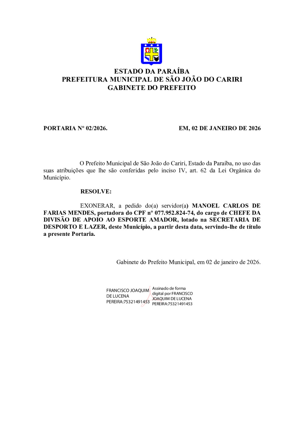 PORTARIA 02/2025 - MANOEL CARLOS DE FARIAS MENDES