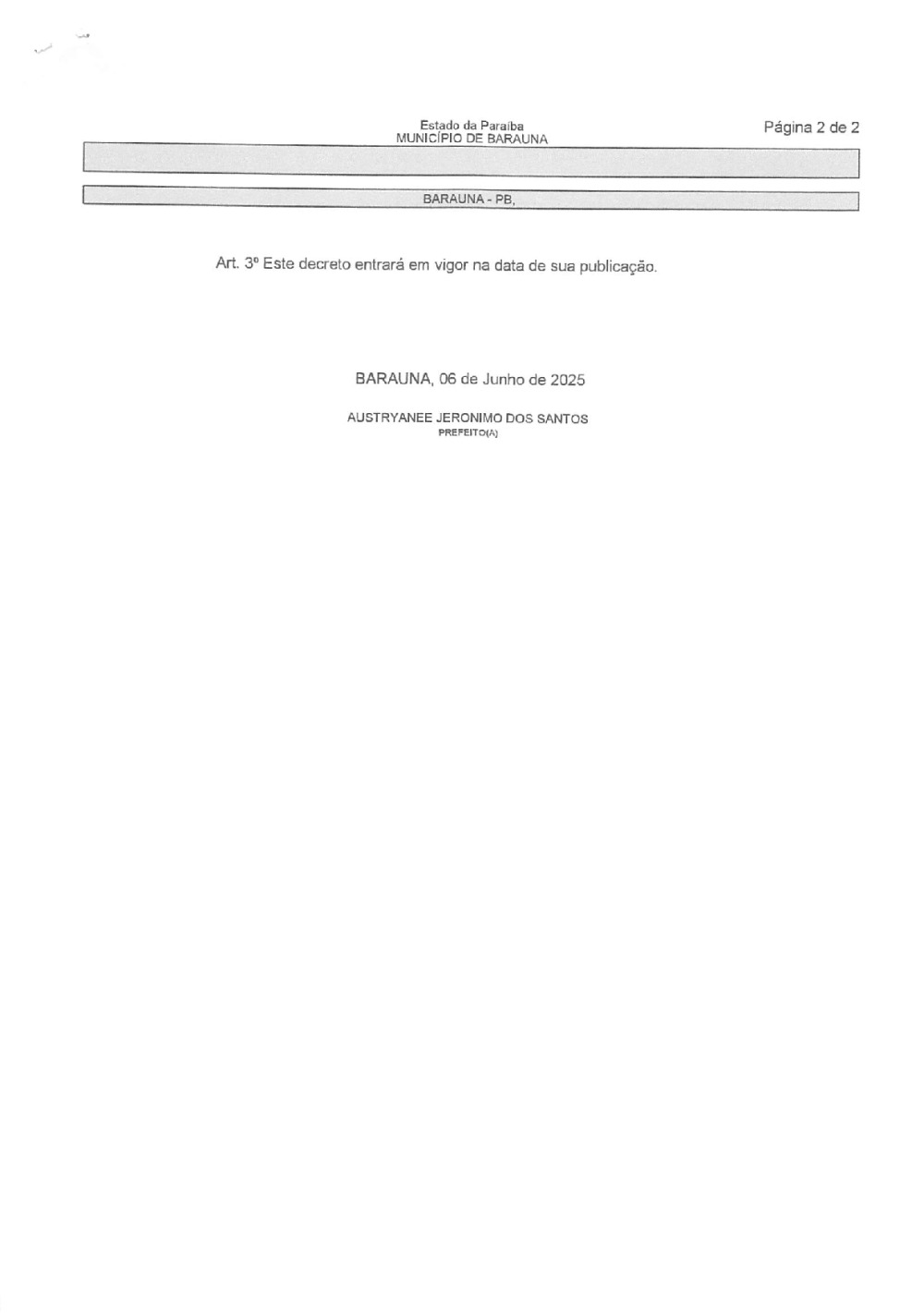 Conforme MP n° 2.200-2 de 24/08/2001, que institui a infraestrutura de chaves Públicas. Matéria Publicada no Diário Oficial do Município de Baraúna/PB no dia - Edição 01399.