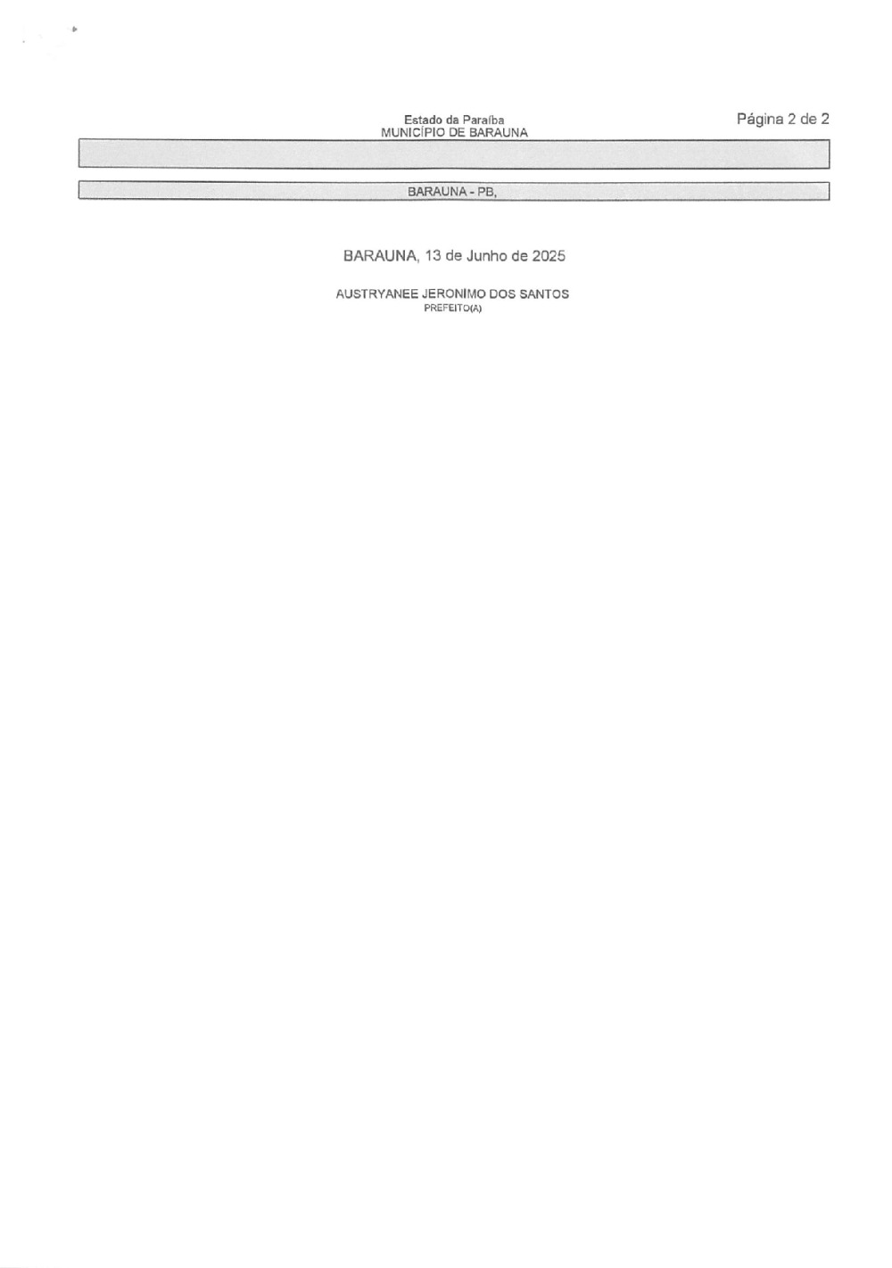Conforme MP n° 2.200-2 de 24/08/2001, que institui a infraestrutura de chaves Públicas. Matéria Publicada no Diário Oficial do Município de Baraúna/PB no dia - Edição 01399.