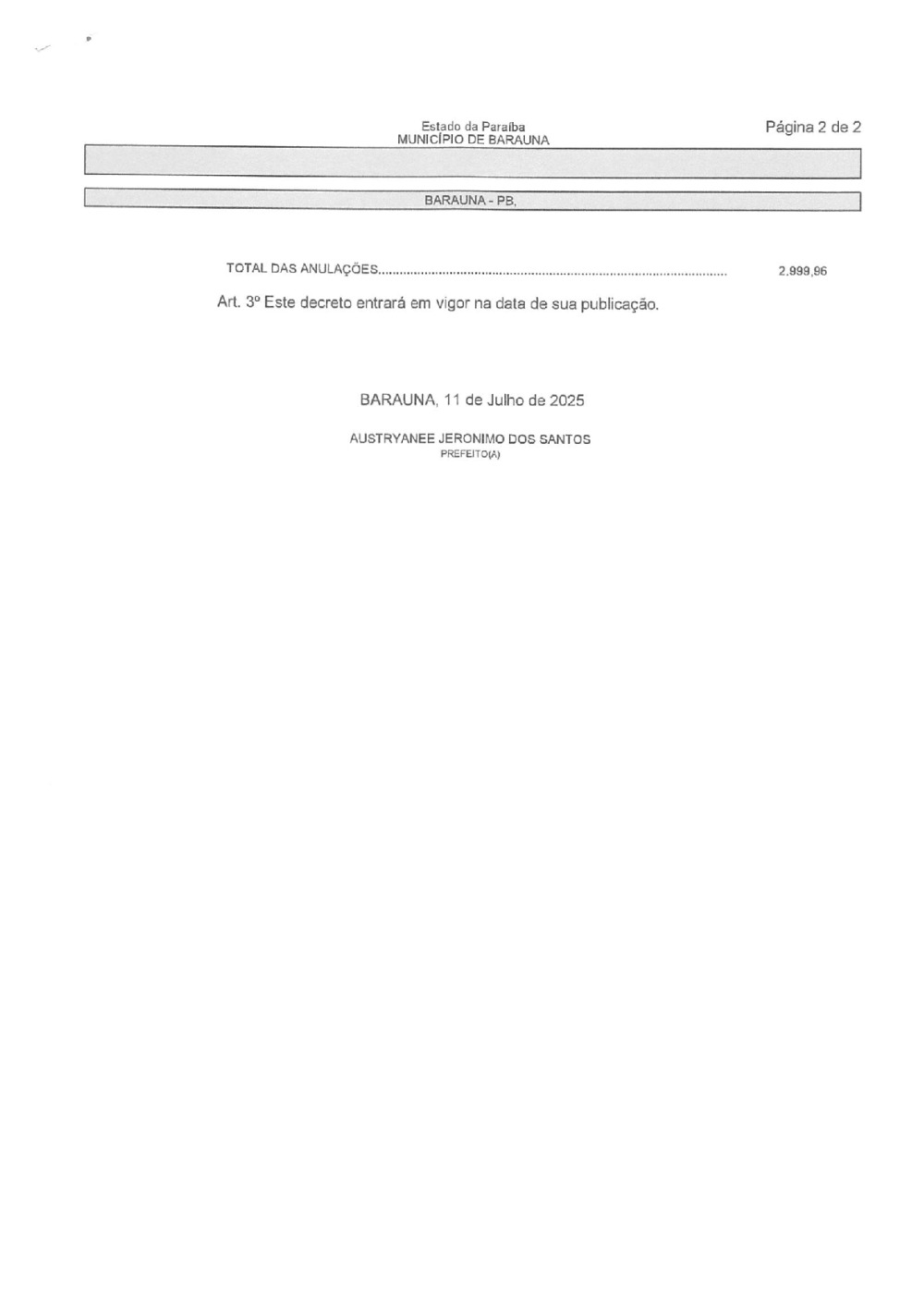 Conforme MP n° 2.200-2 de 24/08/2001, que institui a infraestrutura de chaves Públicas. Matéria Publicada no Diário Oficial do Município de Baraúna/PB no dia - Edição 01400.
