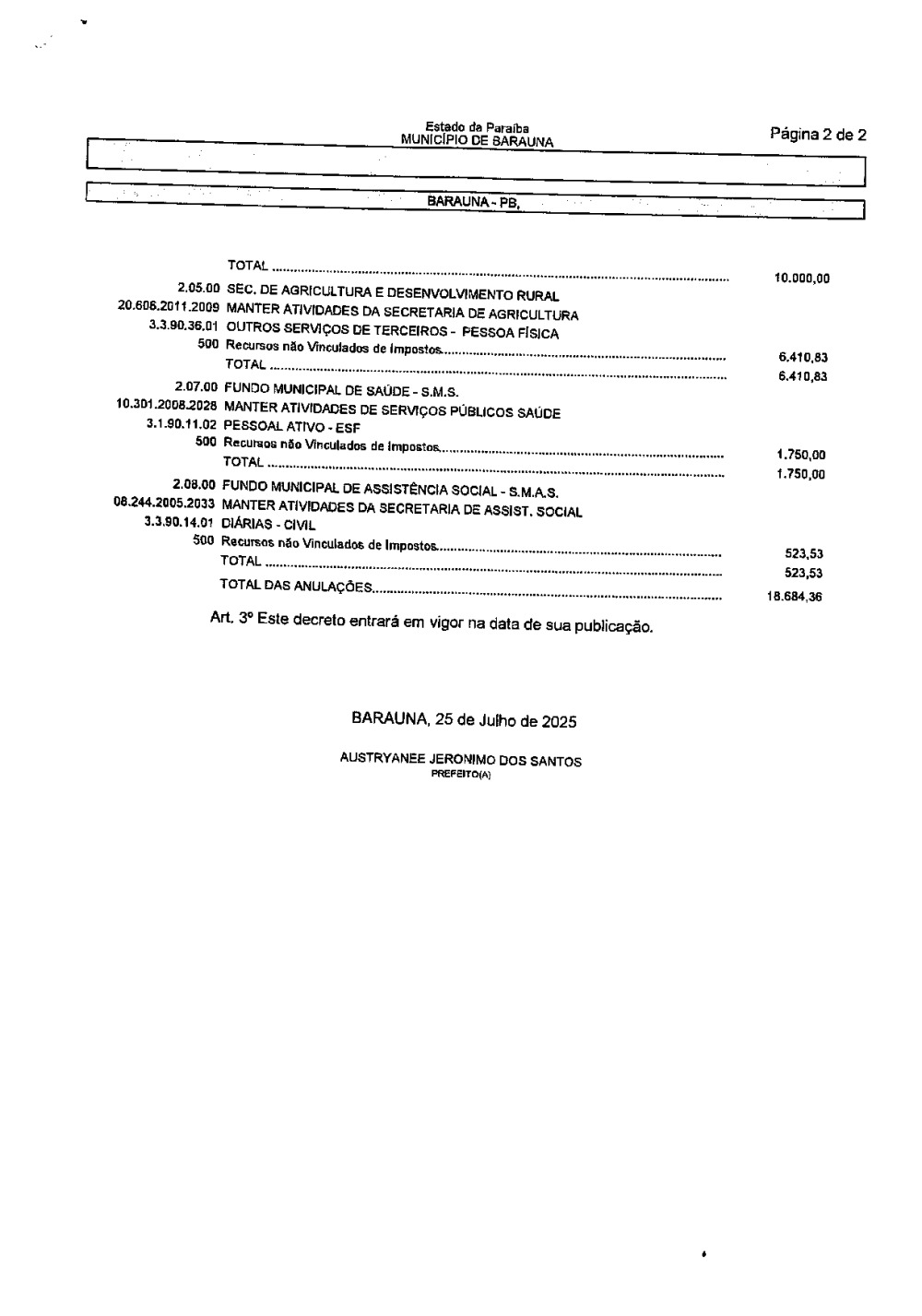 Conforme MP n° 2.200-2 de 24/08/2001, que institui a infraestrutura de chaves Públicas. Matéria Publicada no Diário Oficial do Município de Baraúna/PB no dia - Edição 01400.