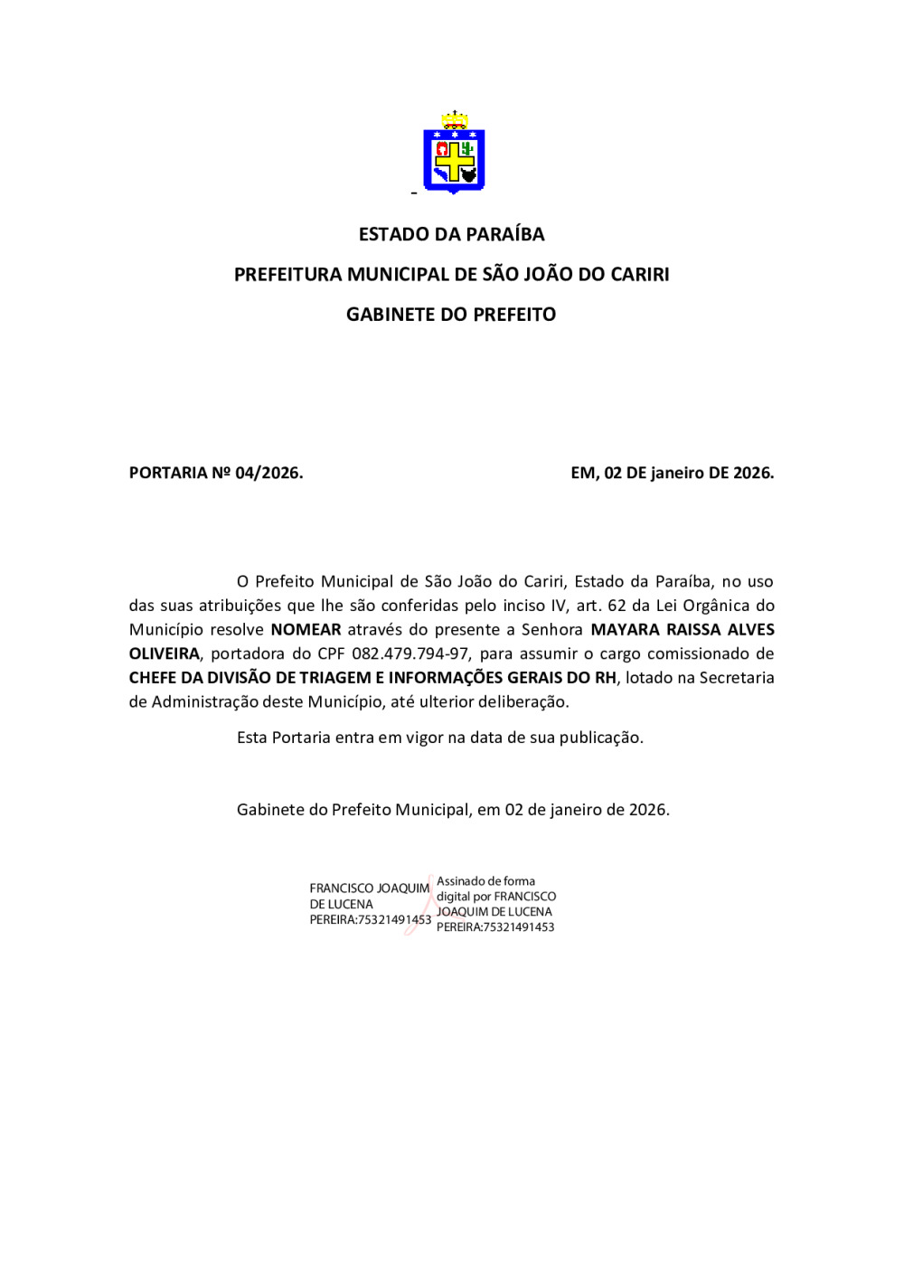 PORTARIA 04/2026 - MAIARA RAISSA ALVES OLIVEIRA