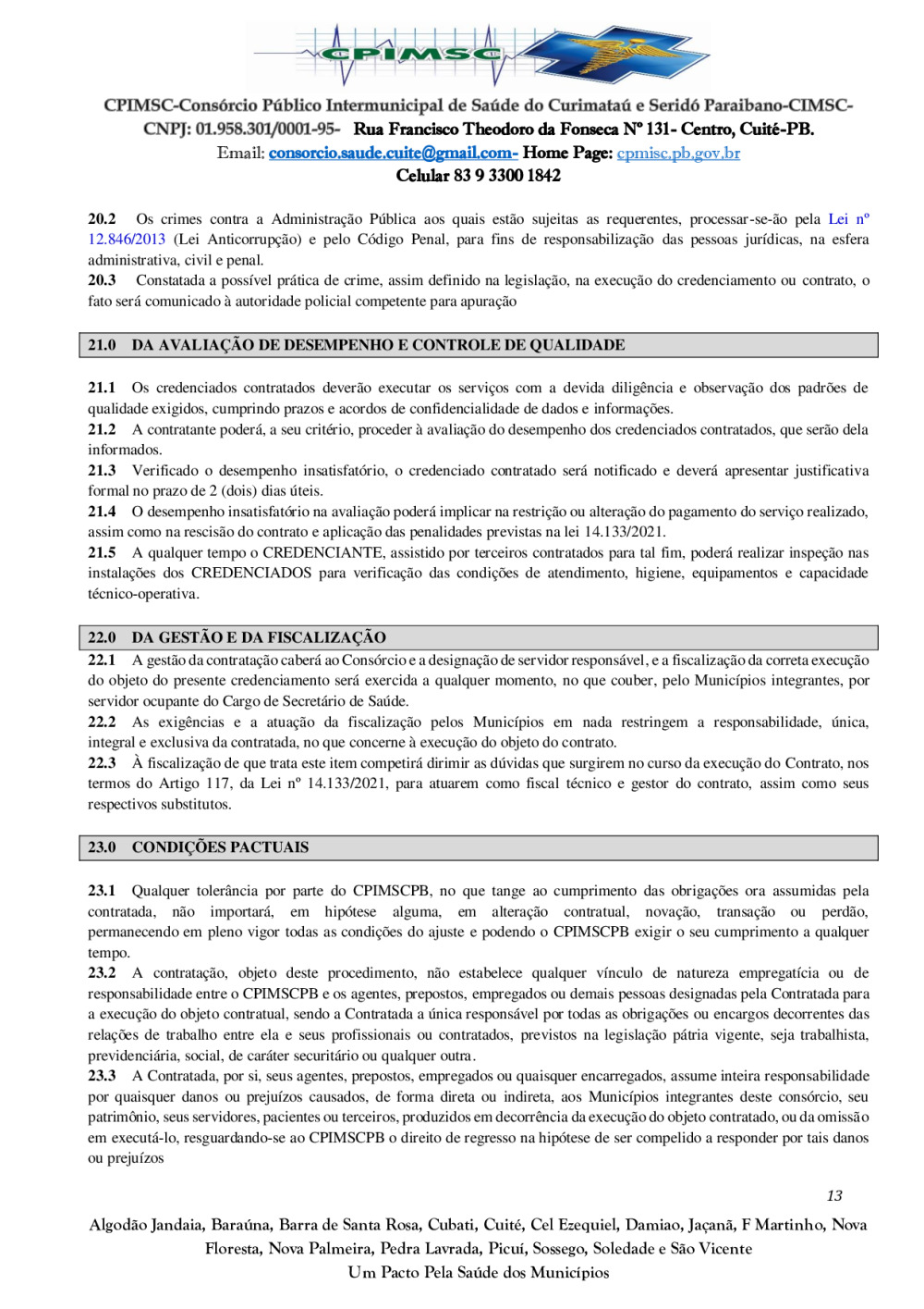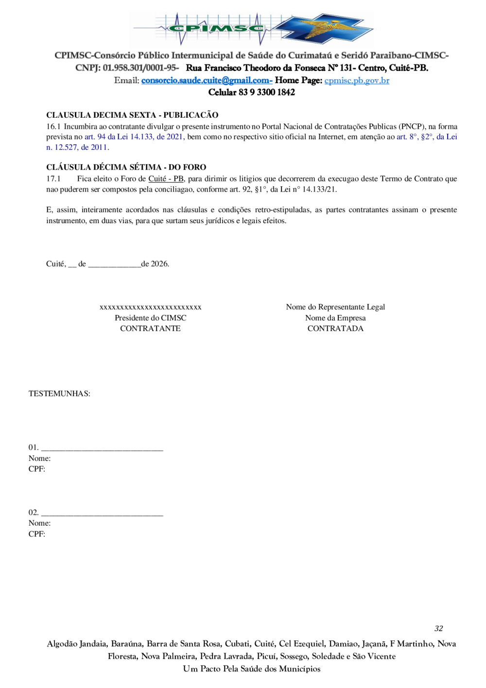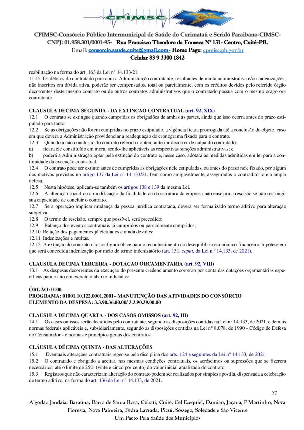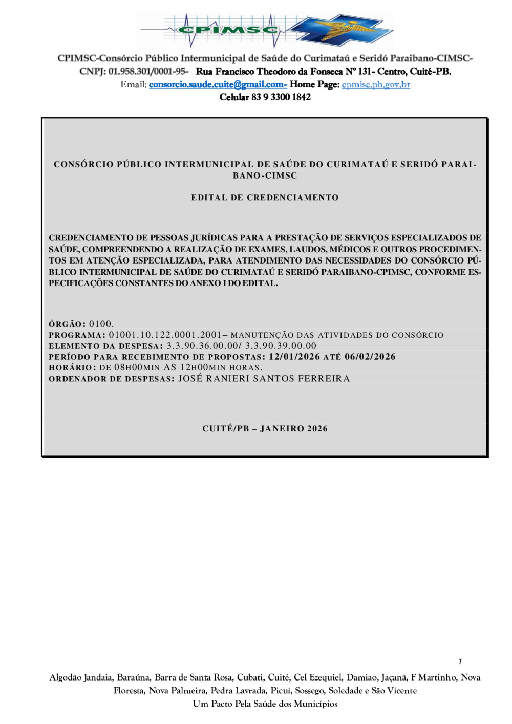 Conforme MP n° 2.200-2 de 24/08/2001, que institui a infraestrutura de chaves Públicas. Matéria Publicada no Diário Oficial do Consórcio Intermunicipal de Saúde do Curimataú e Seridó Paraibano/PB no dia - Edição 01387.