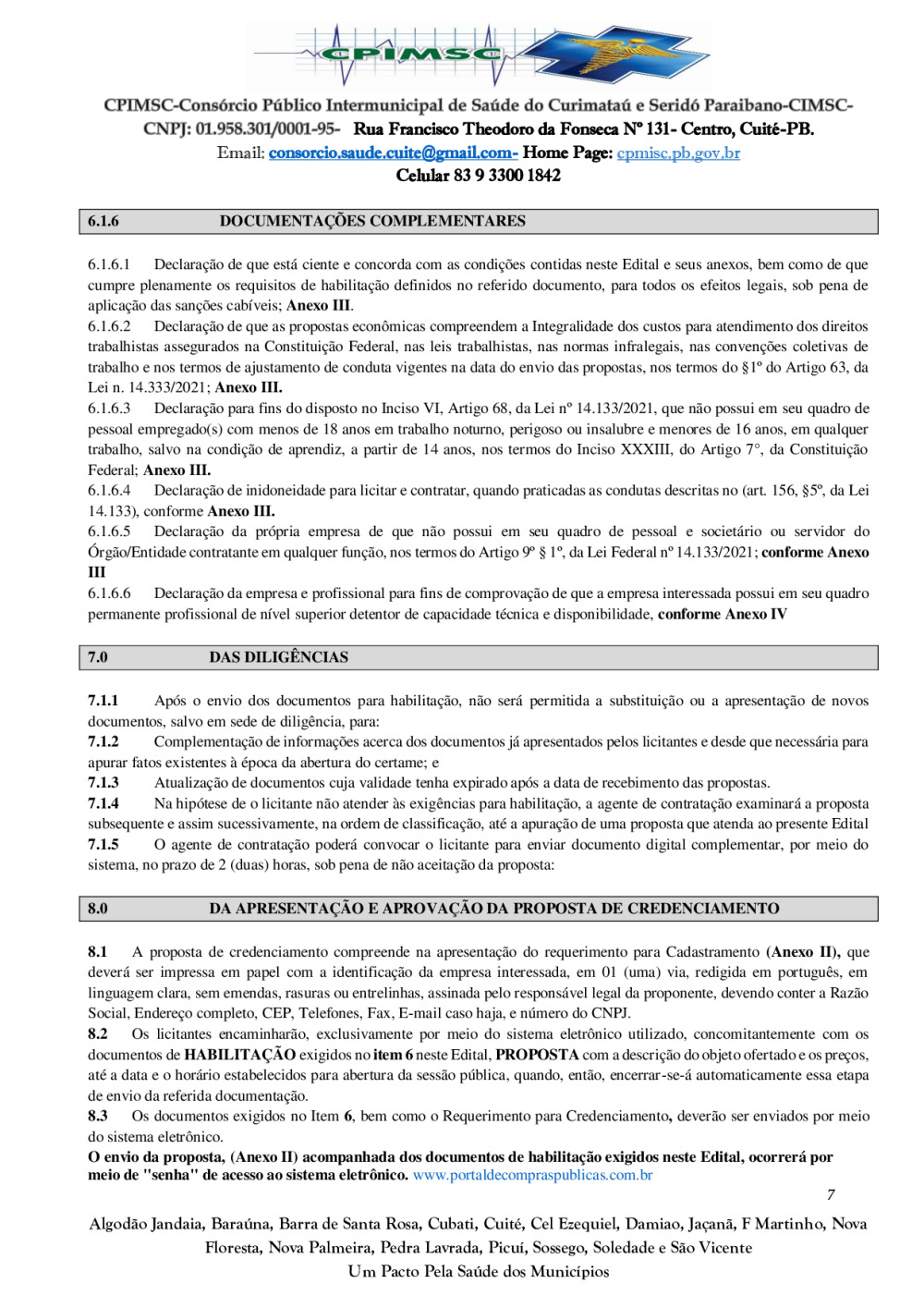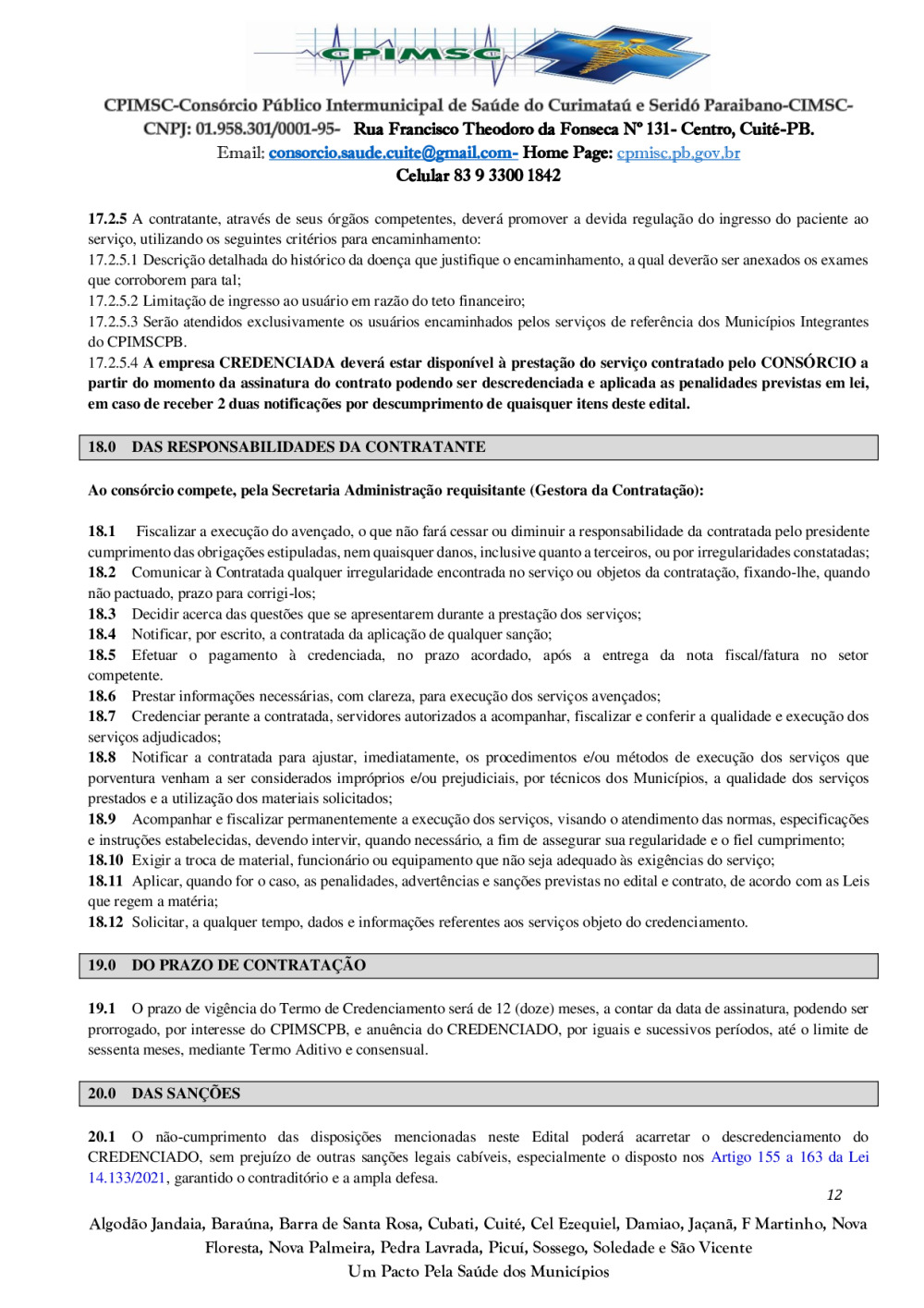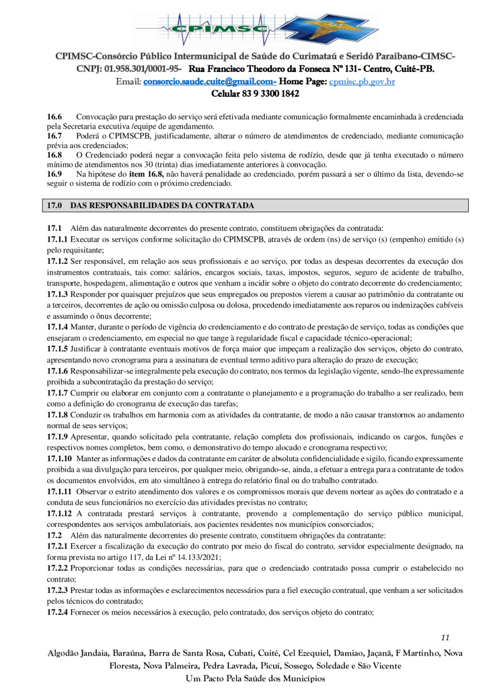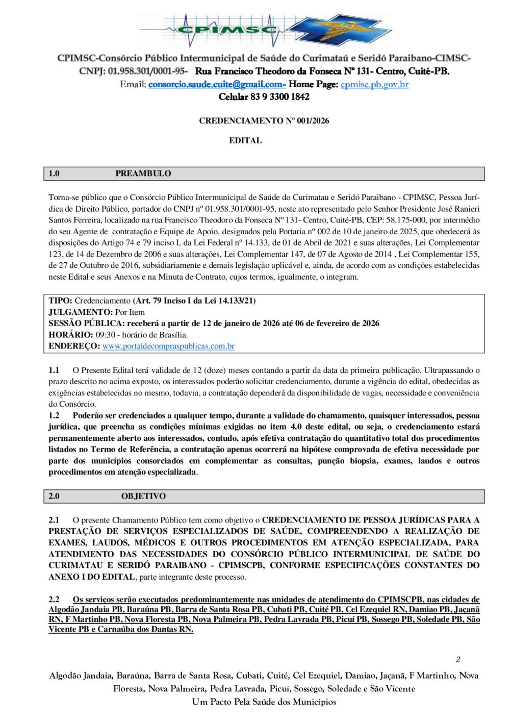 Conforme MP n° 2.200-2 de 24/08/2001, que institui a infraestrutura de chaves Públicas. Matéria Publicada no Diário Oficial do Consórcio Intermunicipal de Saúde do Curimataú e Seridó Paraibano/PB no dia - Edição 01387.