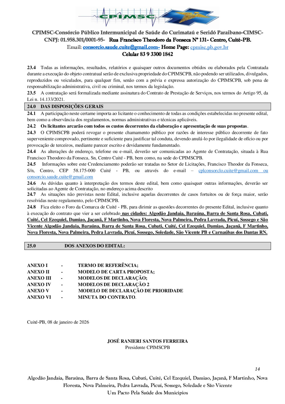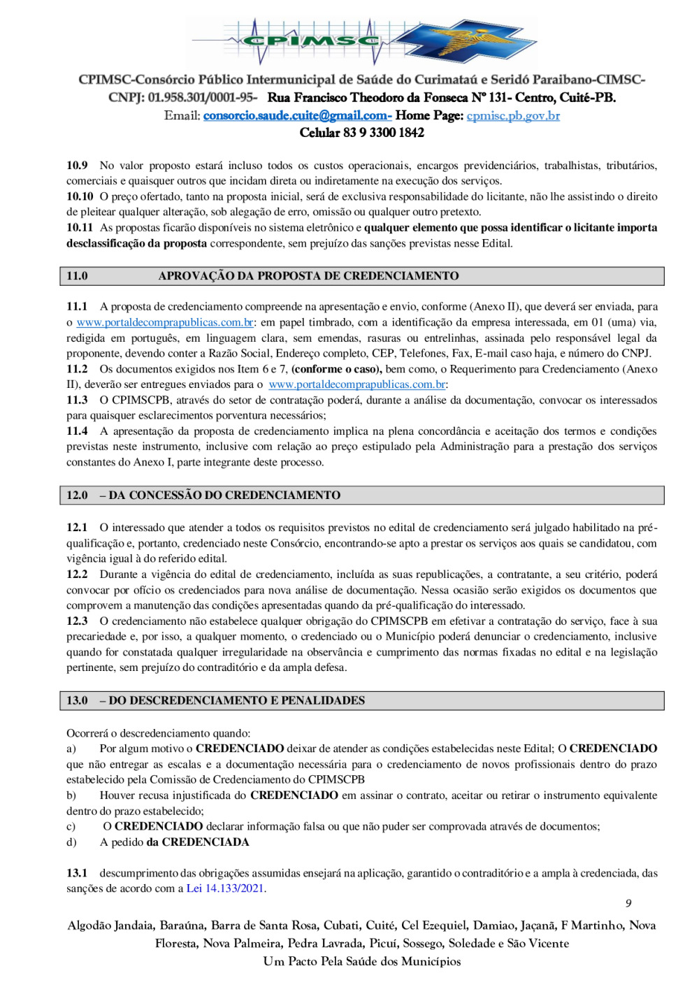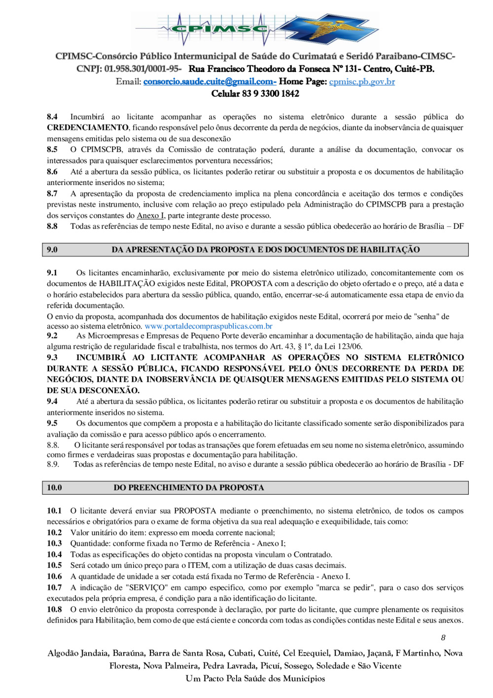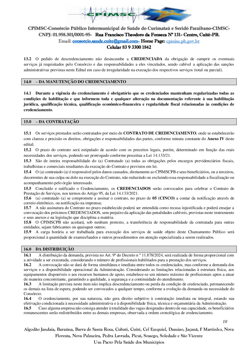 Conforme MP n° 2.200-2 de 24/08/2001, que institui a infraestrutura de chaves Públicas. Matéria Publicada no Diário Oficial do Consórcio Intermunicipal de Saúde do Curimataú e Seridó Paraibano/PB no dia - Edição 01387.