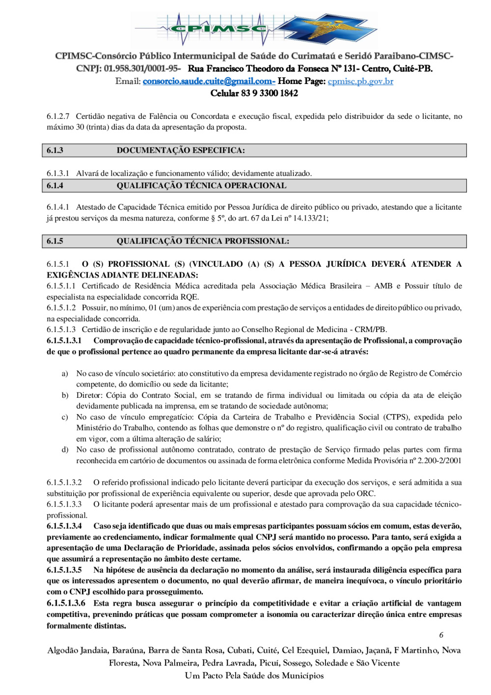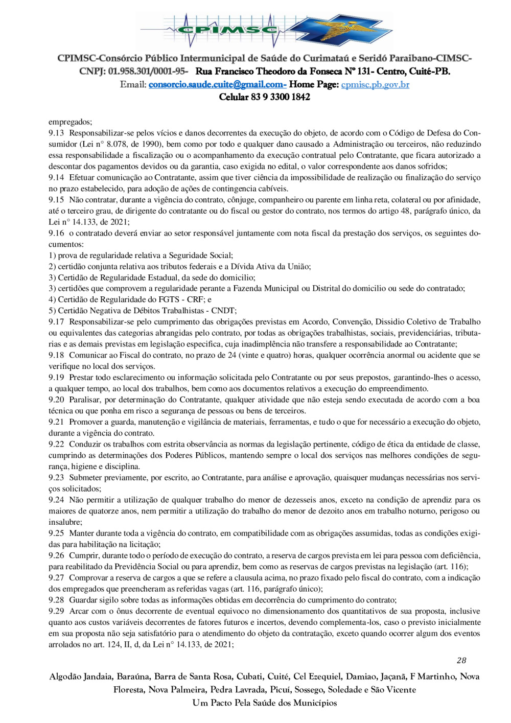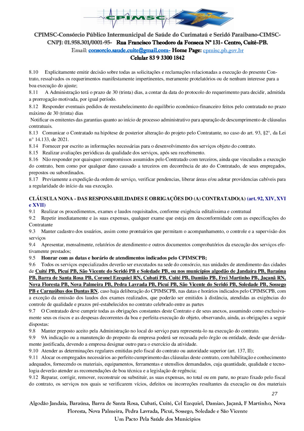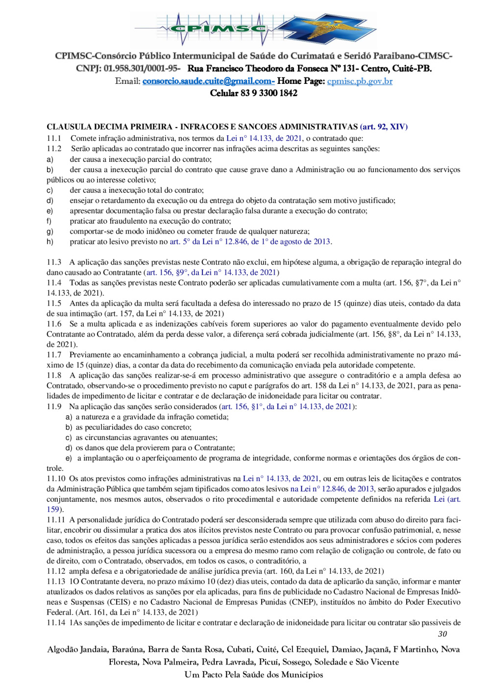 Conforme MP n° 2.200-2 de 24/08/2001, que institui a infraestrutura de chaves Públicas. Matéria Publicada no Diário Oficial do Consórcio Intermunicipal de Saúde do Curimataú e Seridó Paraibano/PB no dia - Edição 01387.