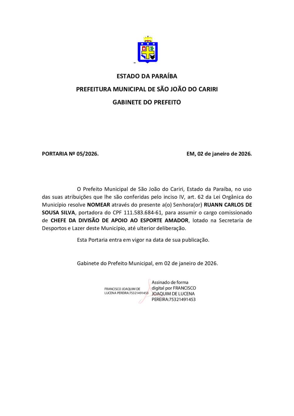 PORTARIA 05/2026 - RUANN CARLOS DE SOUSA SILVA