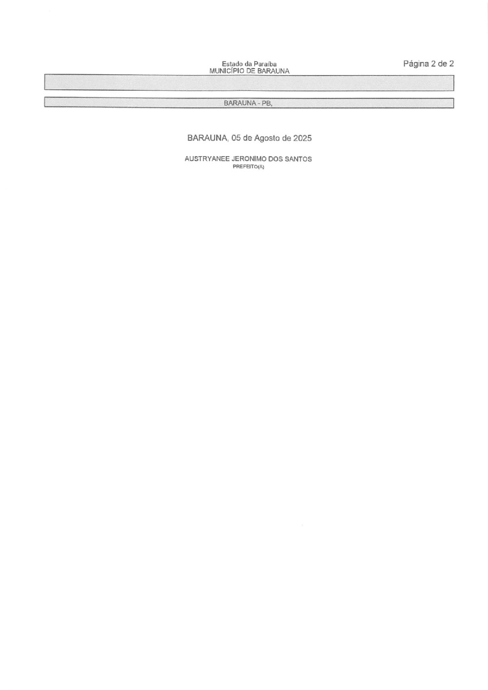 Conforme MP n° 2.200-2 de 24/08/2001, que institui a infraestrutura de chaves Públicas. Matéria Publicada no Diário Oficial do Município de Baraúna/PB no dia - Edição 01404.