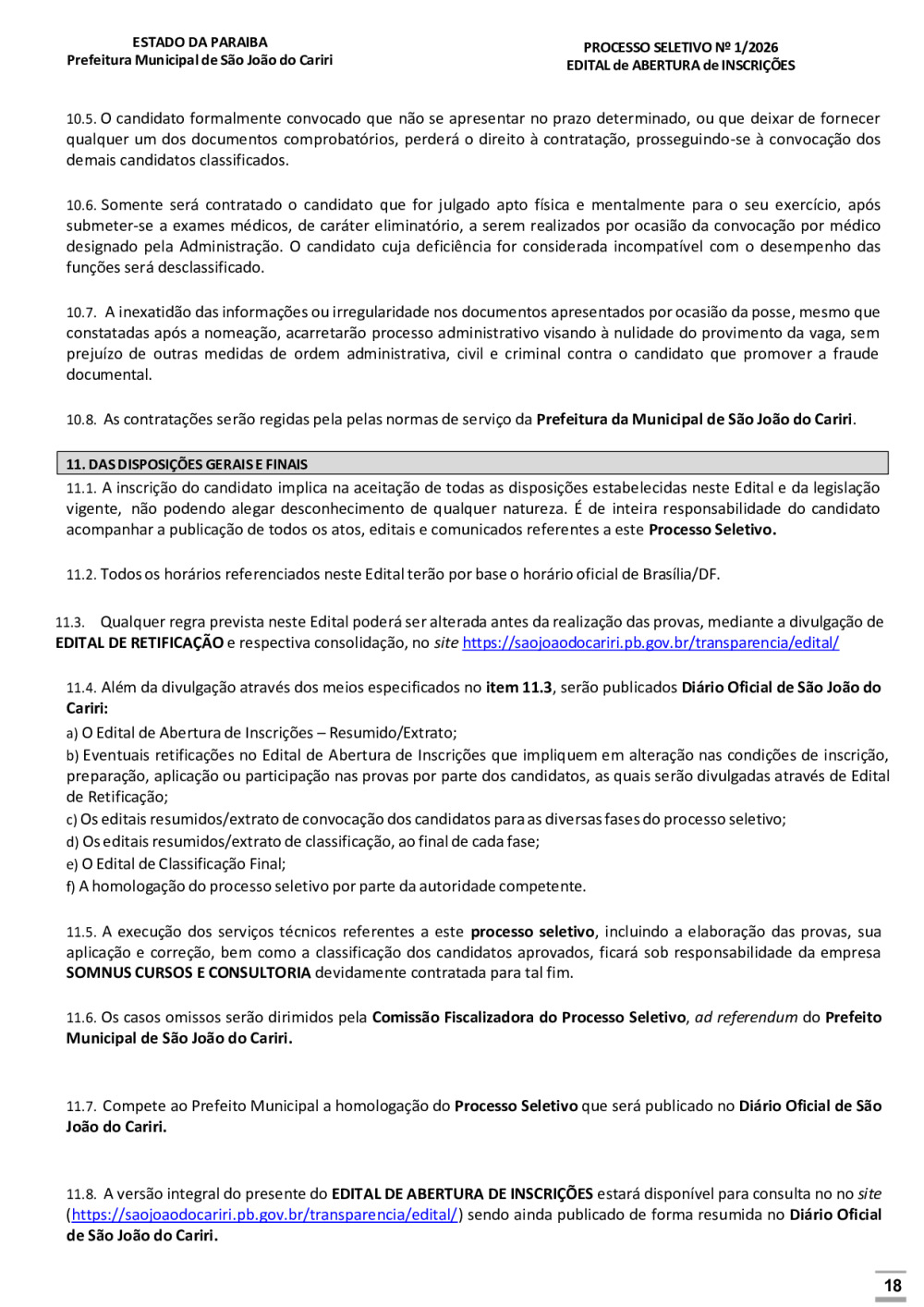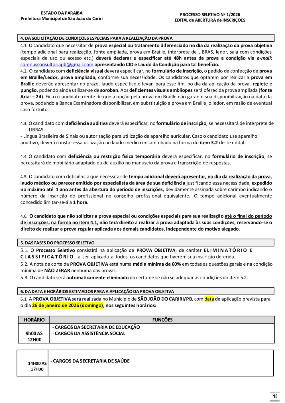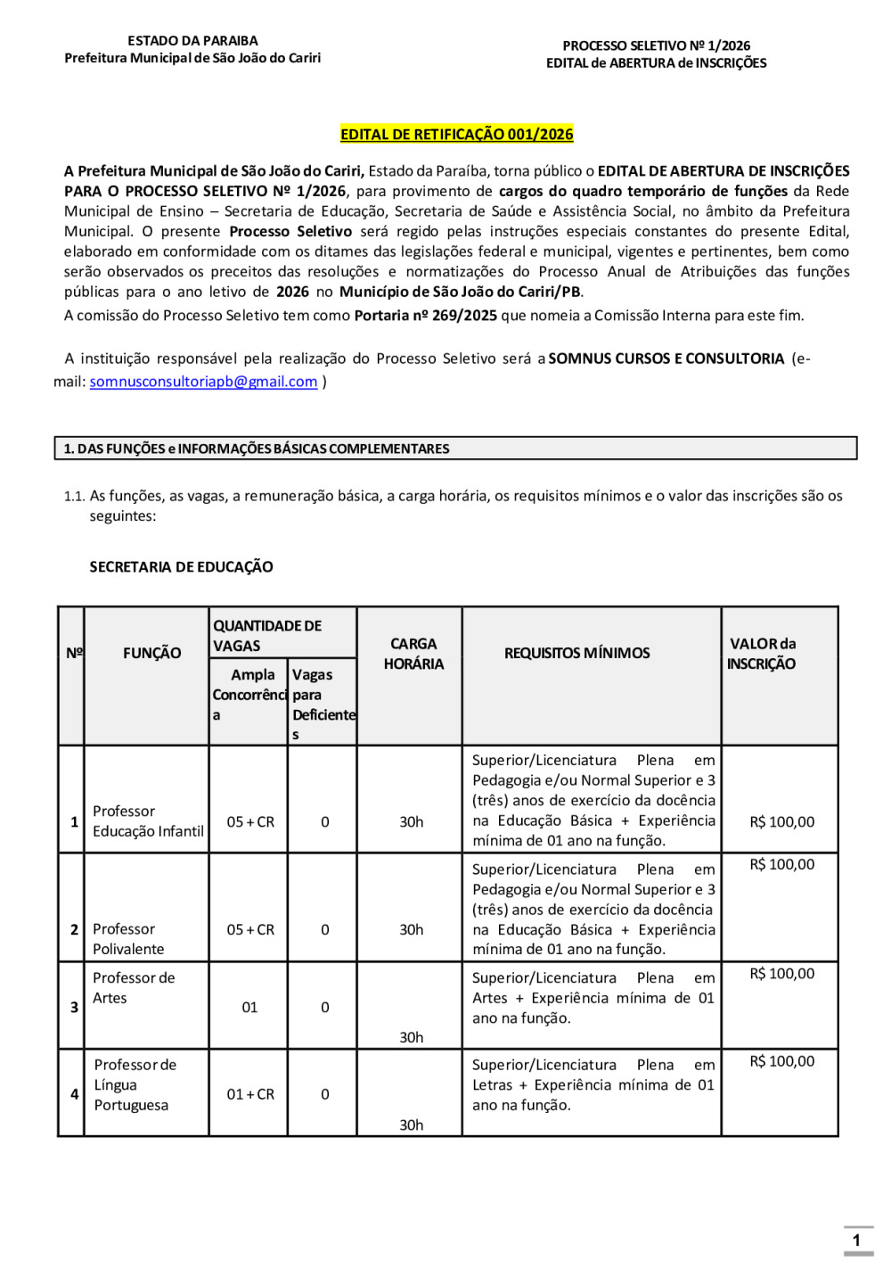 EDITAL DE RETIFICAÇÃO - PROCESSO SELETIVO Nº001/2026