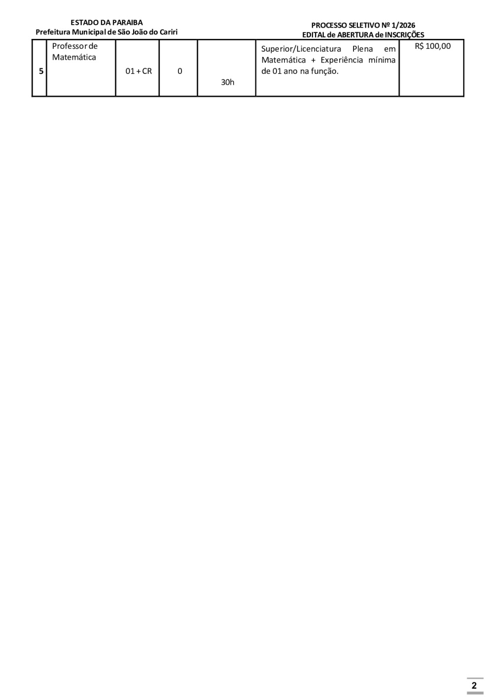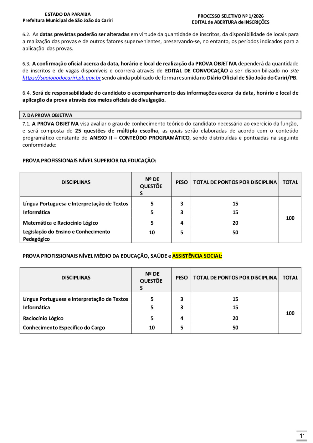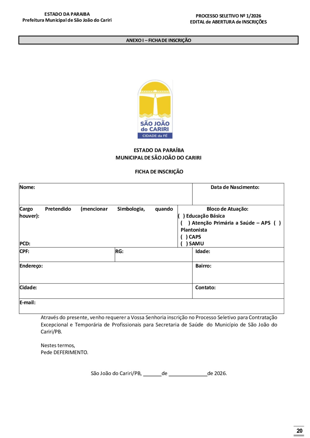 EDITAL DE RETIFICAÇÃO - PROCESSO SELETIVO Nº001/2026