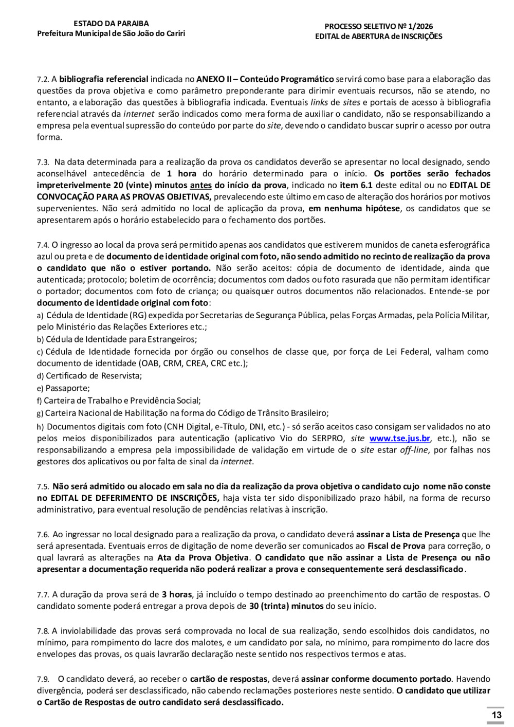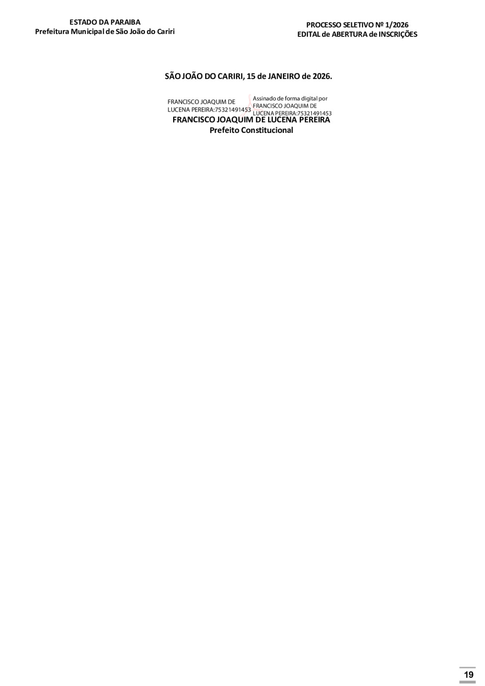 Conforme MP n° 2.200-2 de 24/08/2001, que institui a infraestrutura de chaves Públicas. Matéria Publicada no Diário Oficial do Município de São João do Cariri/PB no dia - Edição 01901.