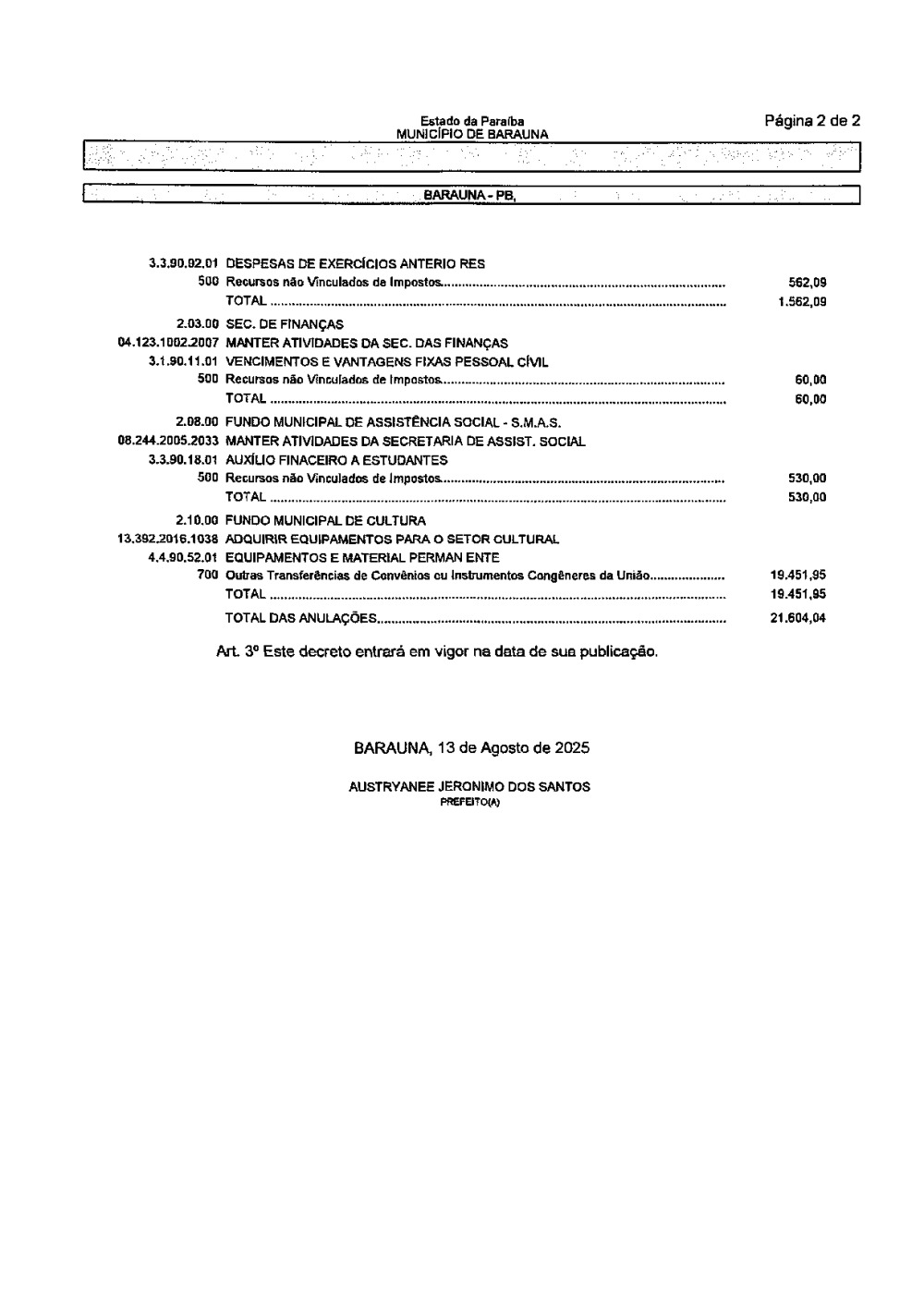Conforme MP n° 2.200-2 de 24/08/2001, que institui a infraestrutura de chaves Públicas. Matéria Publicada no Diário Oficial do Município de Baraúna/PB no dia - Edição 01405.