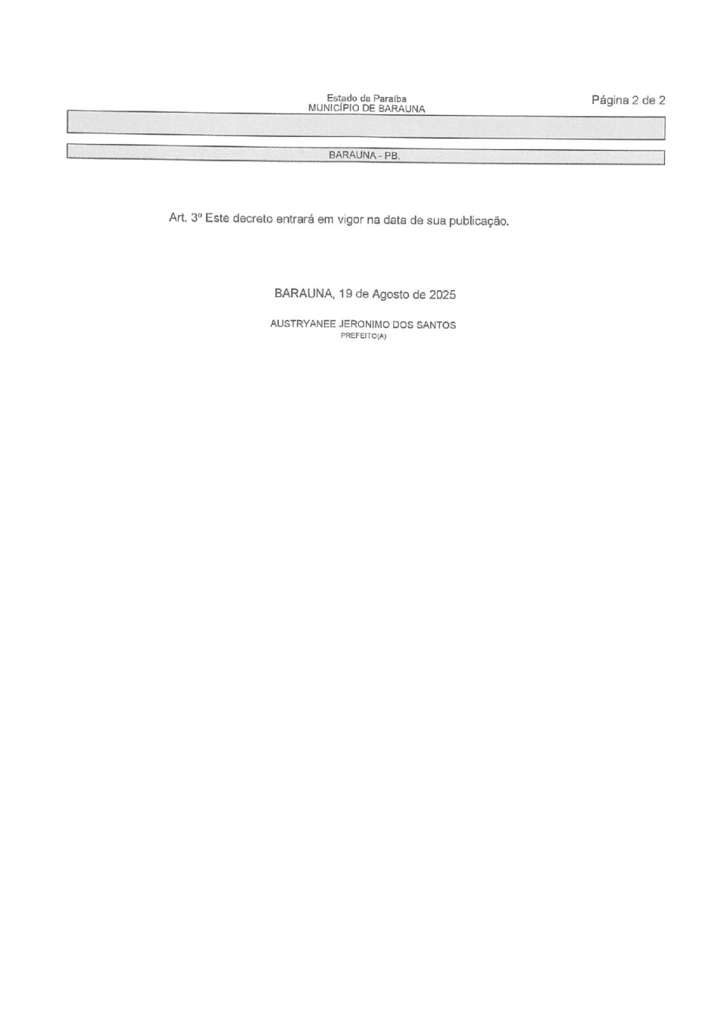 Conforme MP n° 2.200-2 de 24/08/2001, que institui a infraestrutura de chaves Públicas. Matéria Publicada no Diário Oficial do Município de Baraúna/PB no dia - Edição 01405.