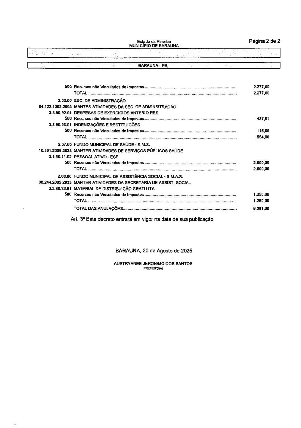 Conforme MP n° 2.200-2 de 24/08/2001, que institui a infraestrutura de chaves Públicas. Matéria Publicada no Diário Oficial do Município de Baraúna/PB no dia - Edição 01405.