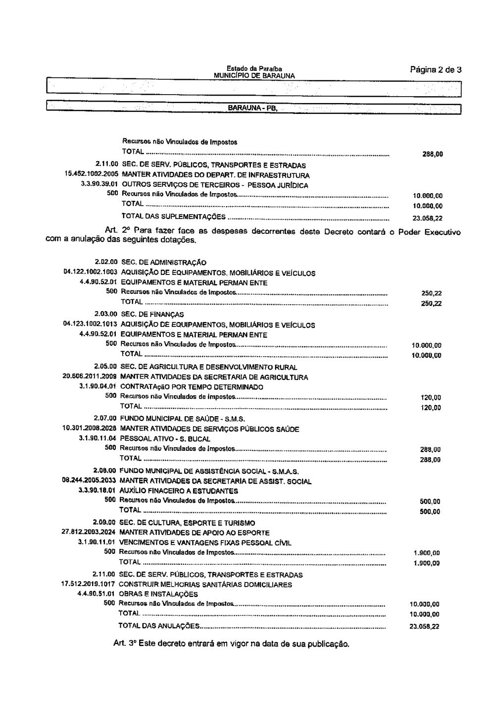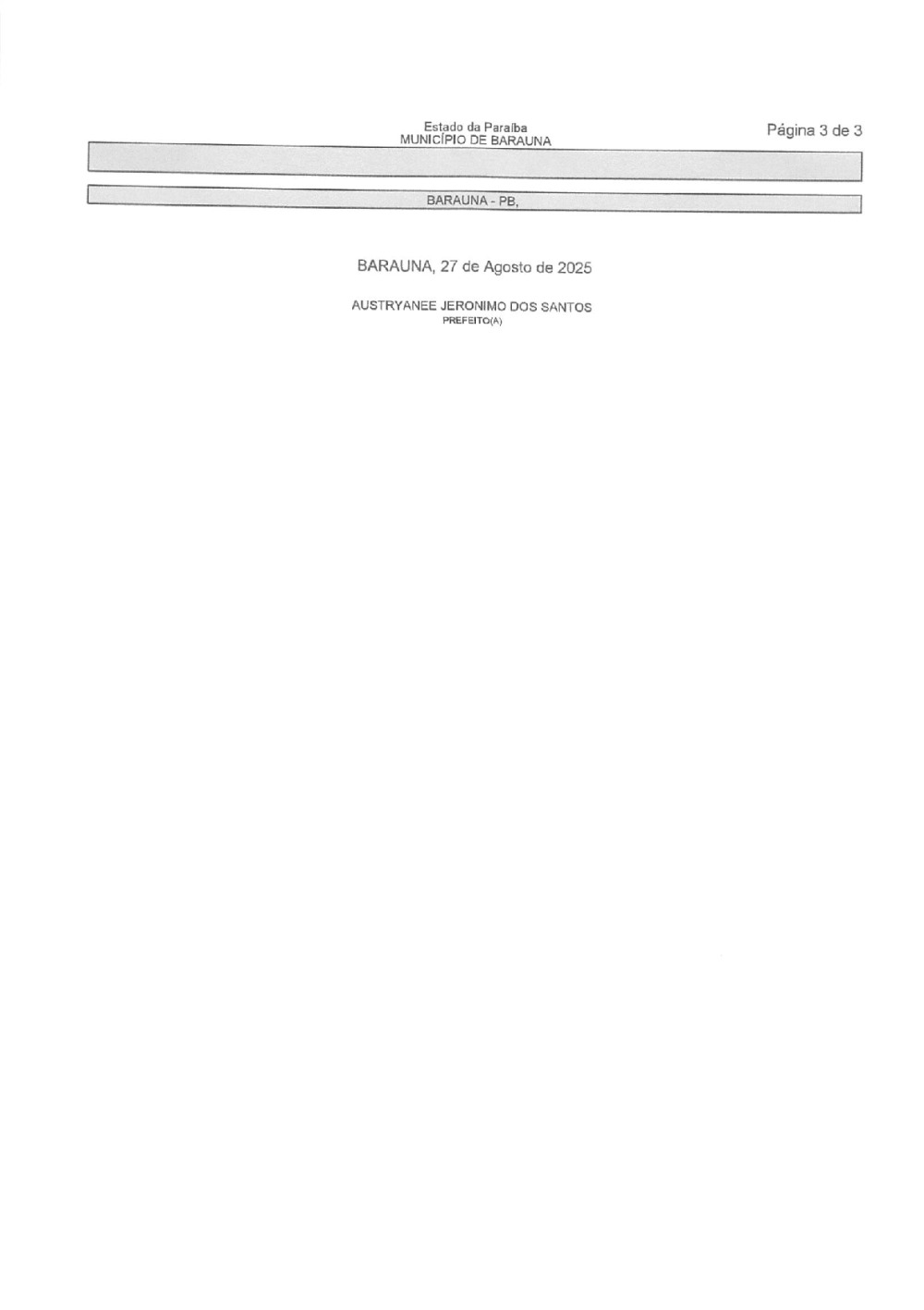Conforme MP n° 2.200-2 de 24/08/2001, que institui a infraestrutura de chaves Públicas. Matéria Publicada no Diário Oficial do Município de Baraúna/PB no dia - Edição 01405.