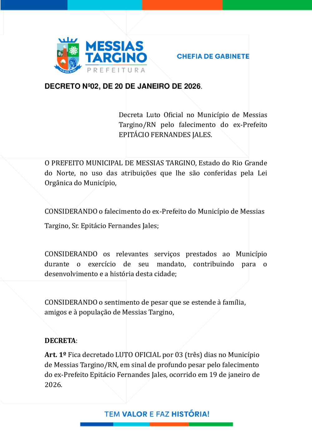 DECRETO Nº02 - LUTO NO MUNICÍPIO