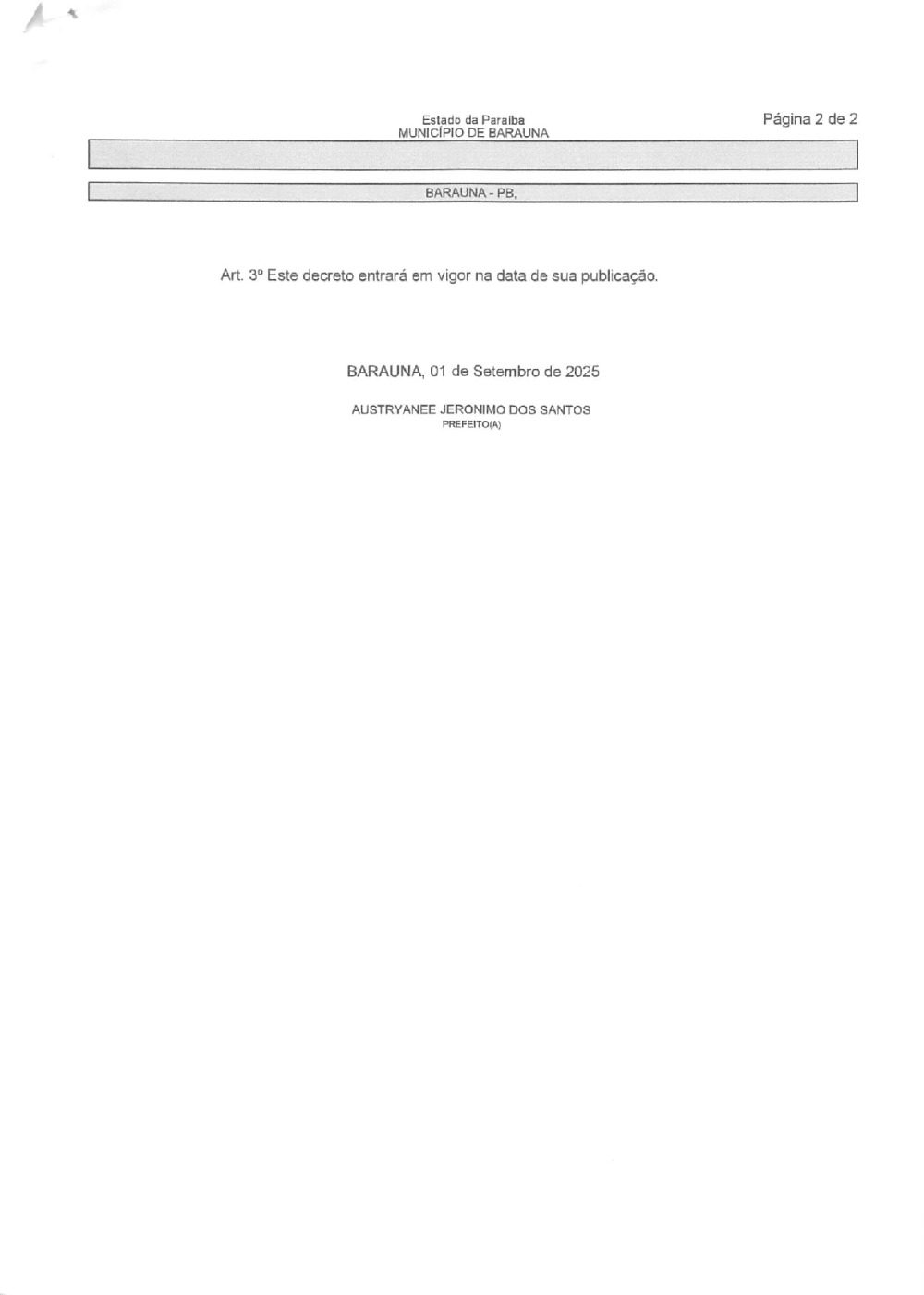 Conforme MP n° 2.200-2 de 24/08/2001, que institui a infraestrutura de chaves Públicas. Matéria Publicada no Diário Oficial do Município de Baraúna/PB no dia - Edição 01407.
