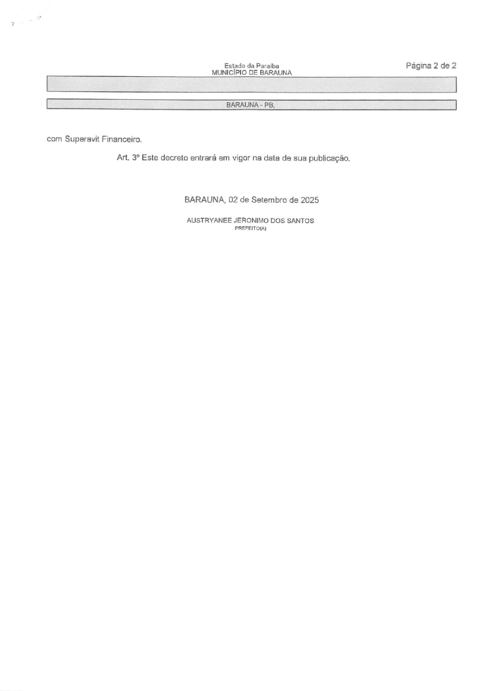 Conforme MP n° 2.200-2 de 24/08/2001, que institui a infraestrutura de chaves Públicas. Matéria Publicada no Diário Oficial do Município de Baraúna/PB no dia - Edição 01407.