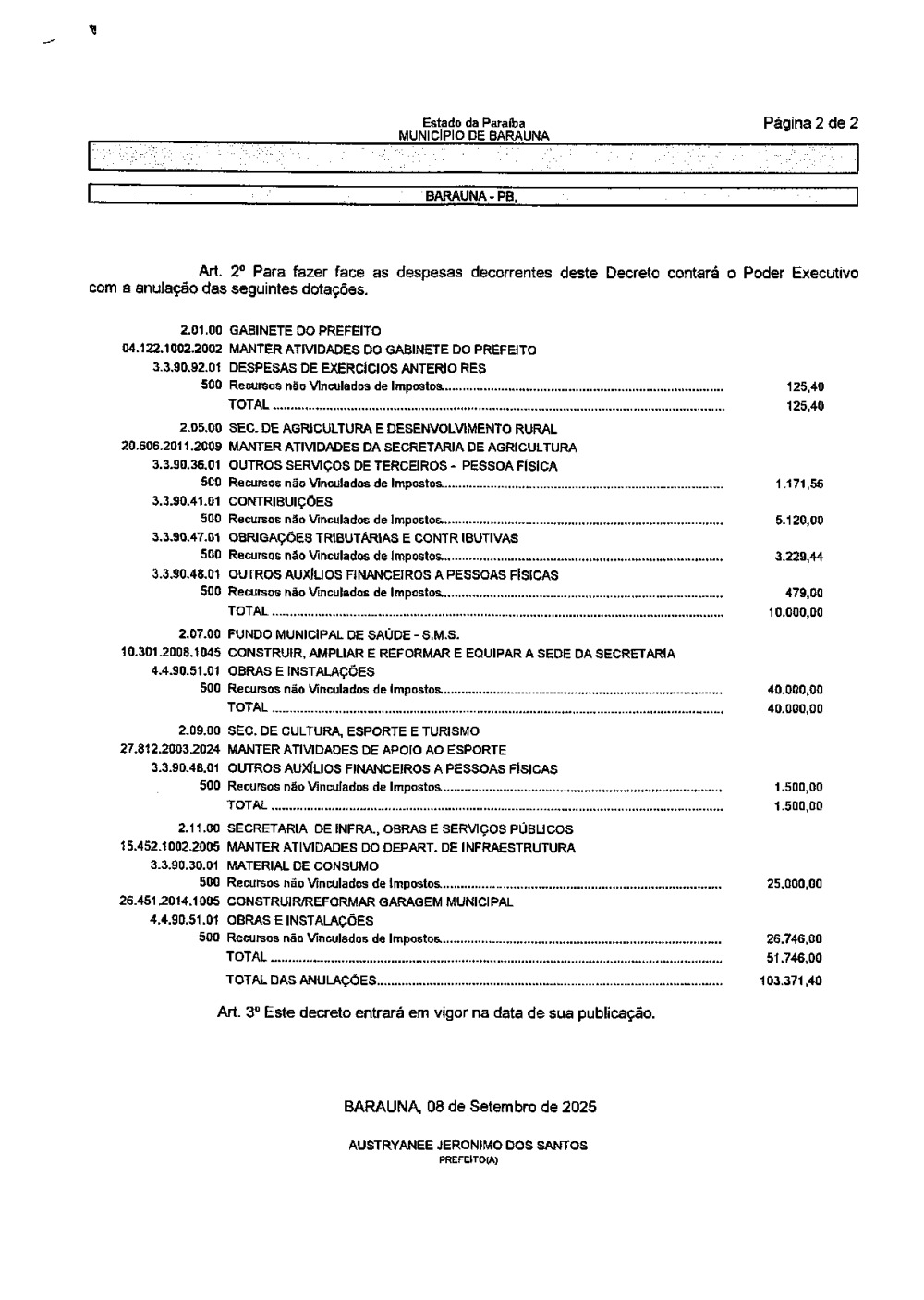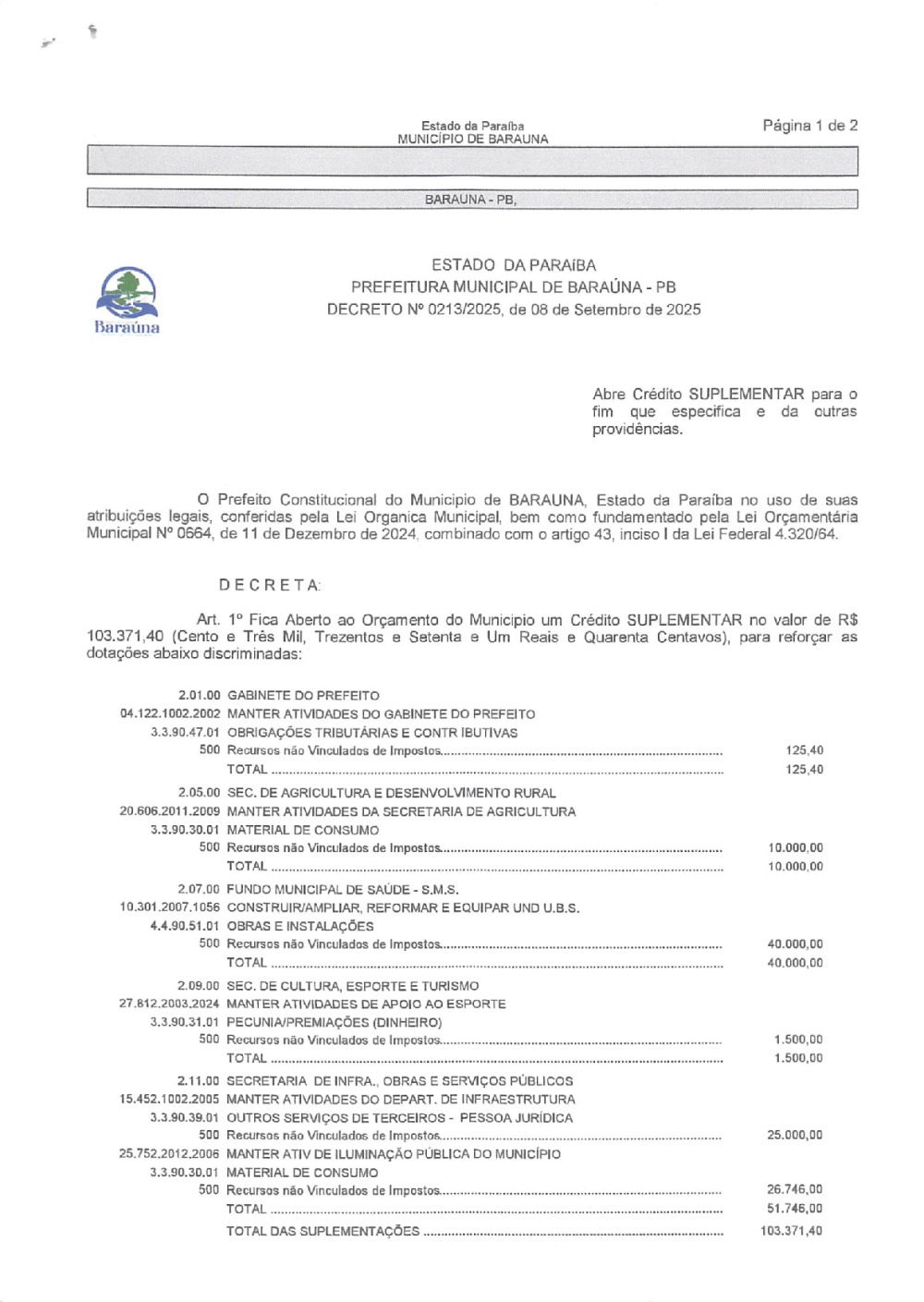 Conforme MP n° 2.200-2 de 24/08/2001, que institui a infraestrutura de chaves Públicas. Matéria Publicada no Diário Oficial do Município de Baraúna/PB no dia - Edição 01407.