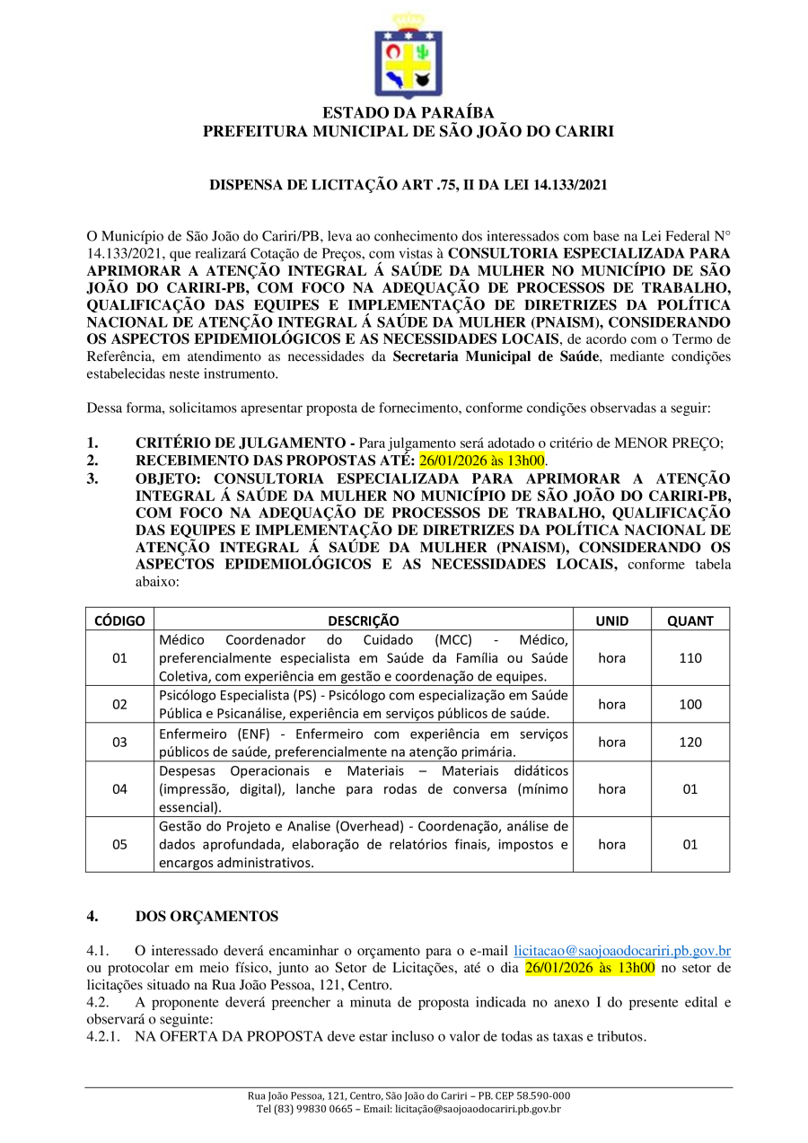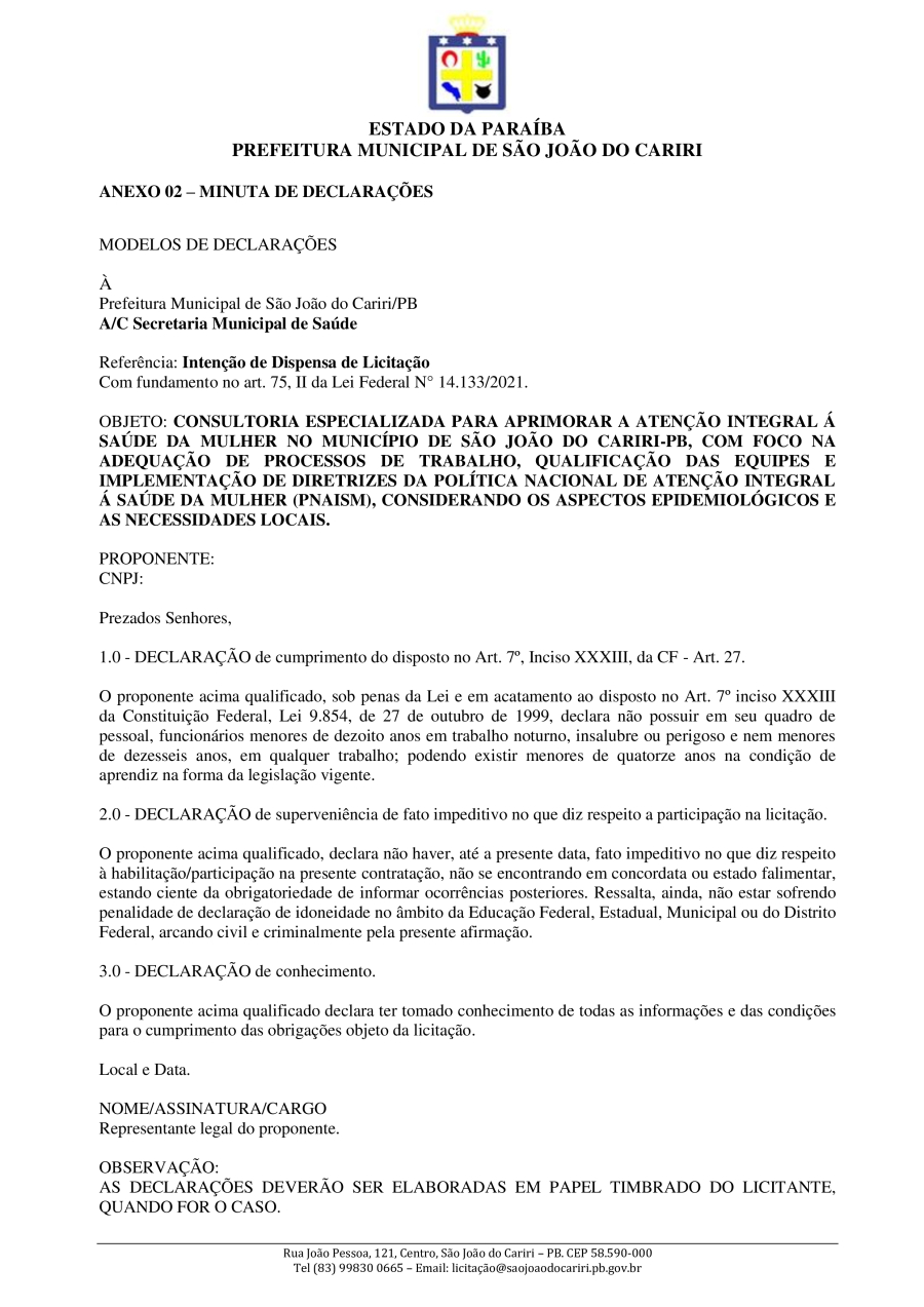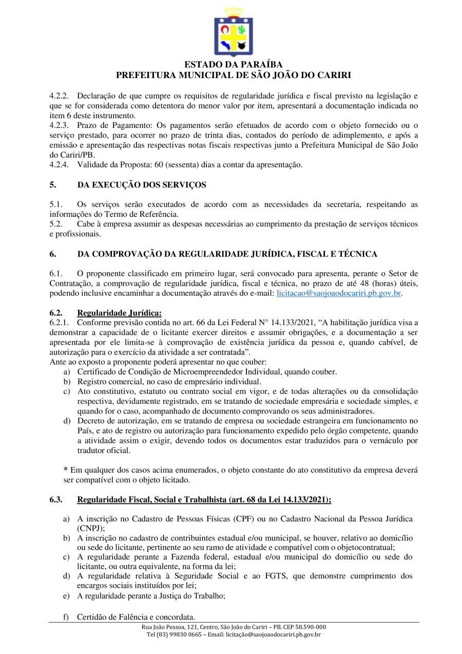 Conforme MP n° 2.200-2 de 24/08/2001, que institui a infraestrutura de chaves Públicas. Matéria Publicada no Diário Oficial do Município de São João do Cariri/PB no dia - Edição 01904.