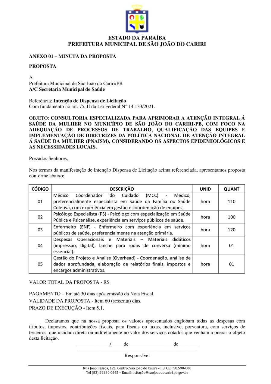 AVISO DE PRETENSÃO CONTRATAÇÃO DIRETA DISPENSA DE LICITAÇÃO Nº DV00005/2026