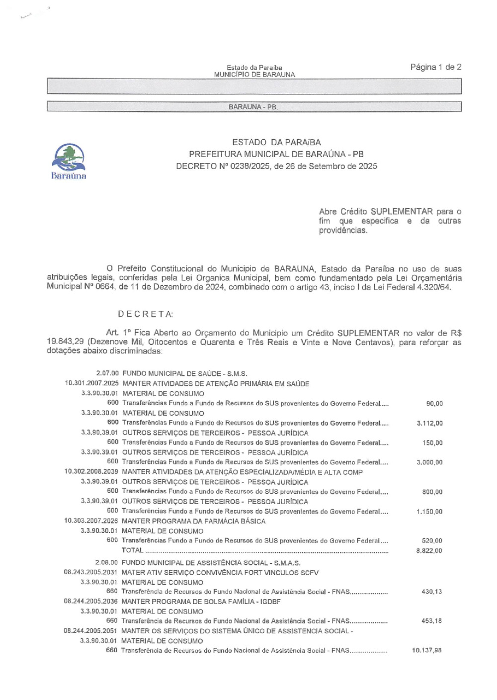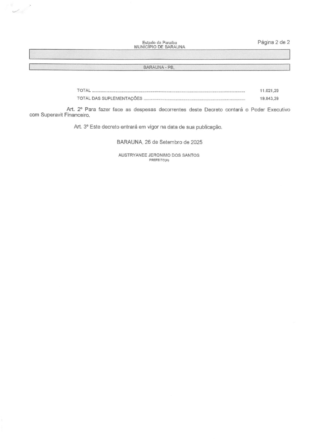 Conforme MP n° 2.200-2 de 24/08/2001, que institui a infraestrutura de chaves Públicas. Matéria Publicada no Diário Oficial do Município de Baraúna/PB no dia - Edição 01409.