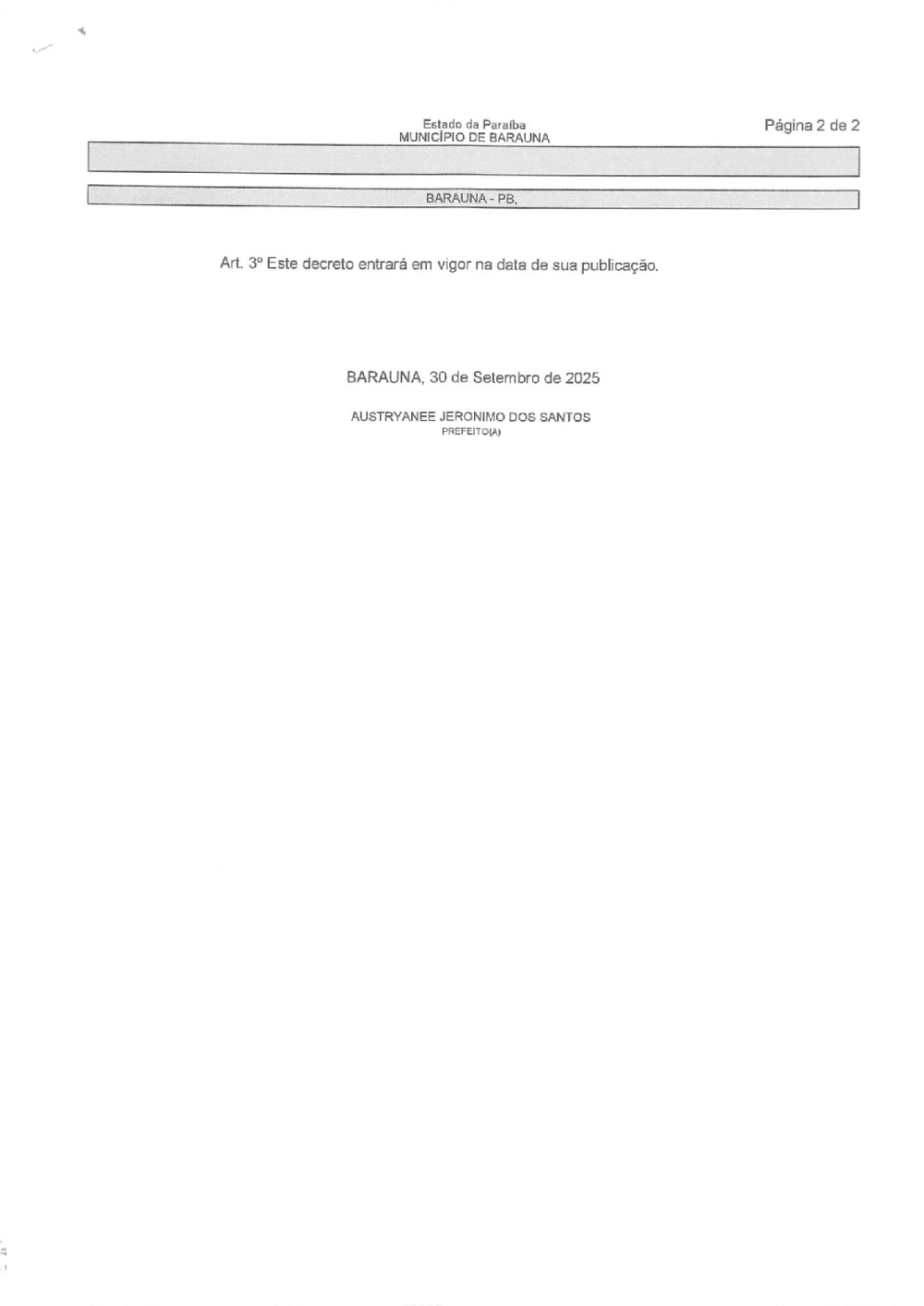 Conforme MP n° 2.200-2 de 24/08/2001, que institui a infraestrutura de chaves Públicas. Matéria Publicada no Diário Oficial do Município de Baraúna/PB no dia - Edição 01409.