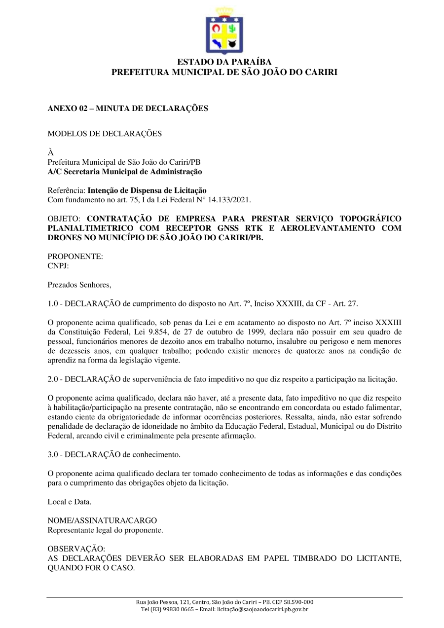 Conforme MP n° 2.200-2 de 24/08/2001, que institui a infraestrutura de chaves Públicas. Matéria Publicada no Diário Oficial do Município de São João do Cariri/PB no dia - Edição 01905.
