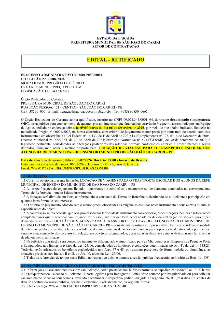 AVISO DE LICITAÇÃO - PREGÃO ELETRÔNICO Nº 00004/2026