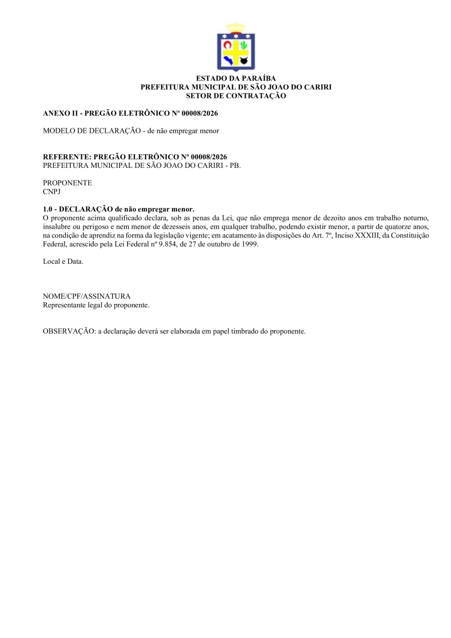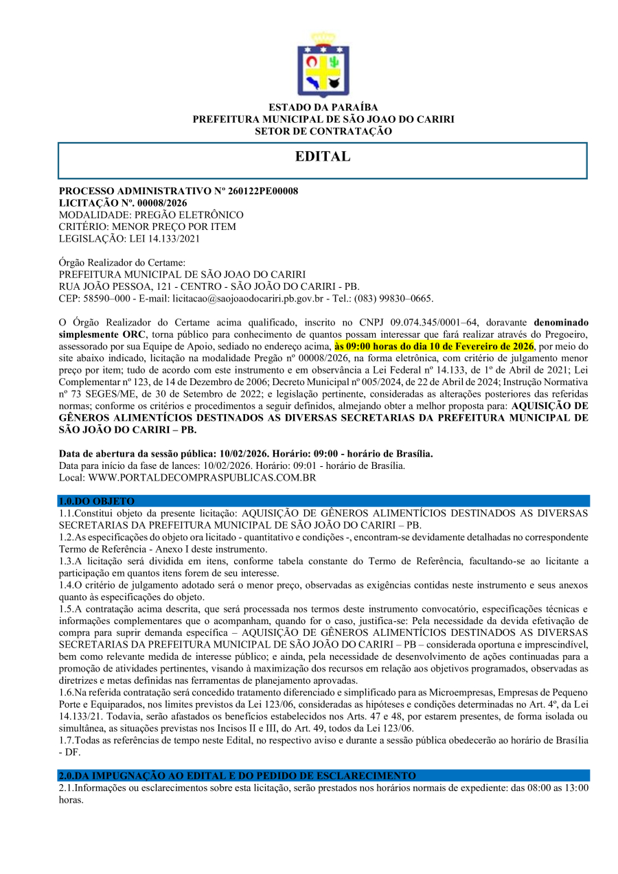 Conforme MP n° 2.200-2 de 24/08/2001, que institui a infraestrutura de chaves Públicas. Matéria Publicada no Diário Oficial do Município de São João do Cariri/PB no dia - Edição 01908.