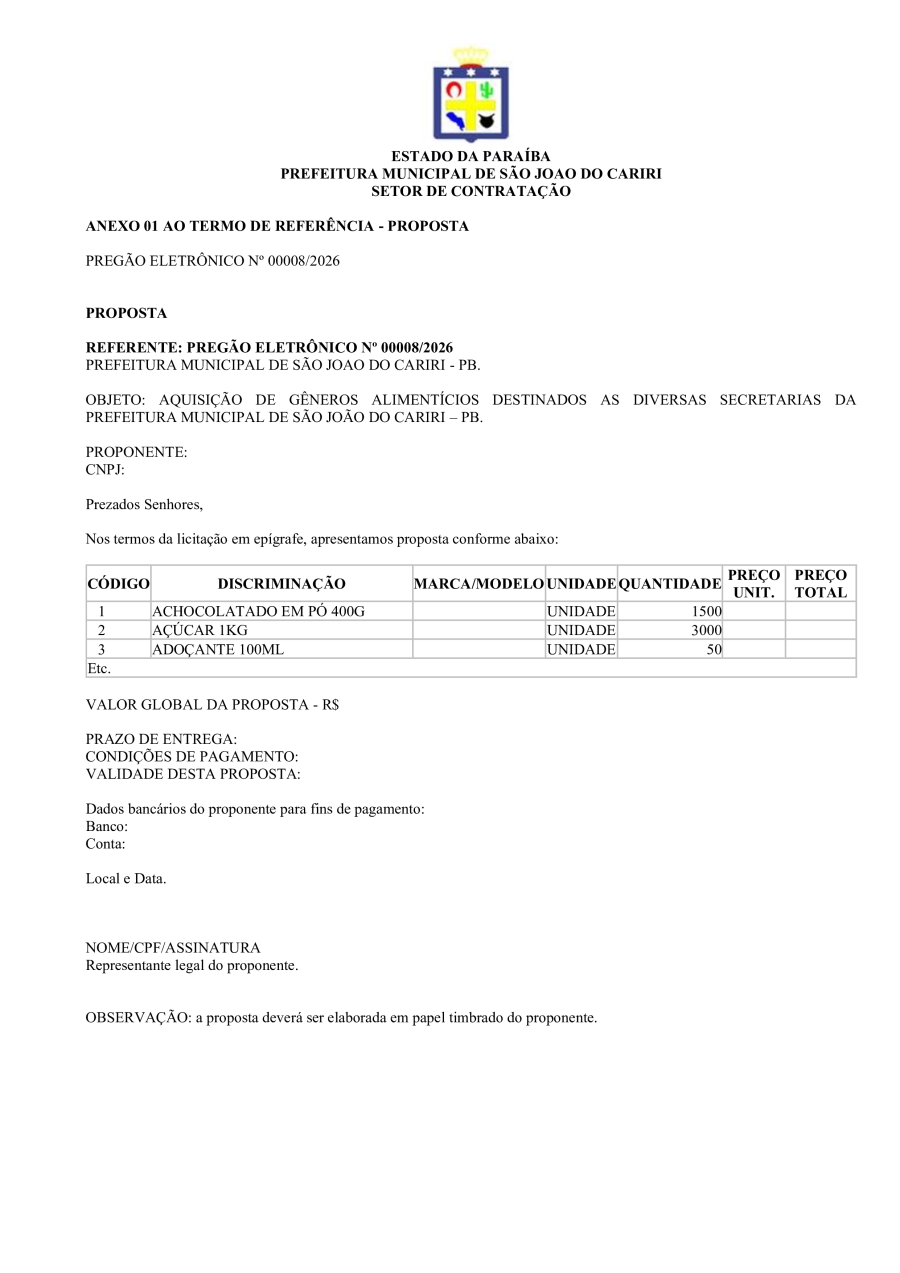 AVISO DE LICITAÇÃO - PREGÃO ELETRÔNICO Nº 00008/2026