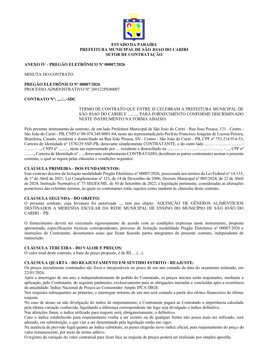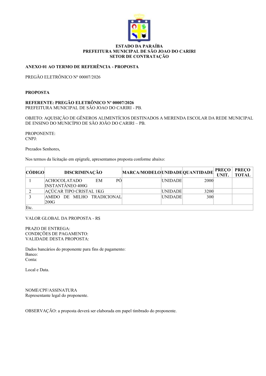AVISO DE LICITAÇÃO - PREGÃO ELETRÔNICO Nº 00007/2026