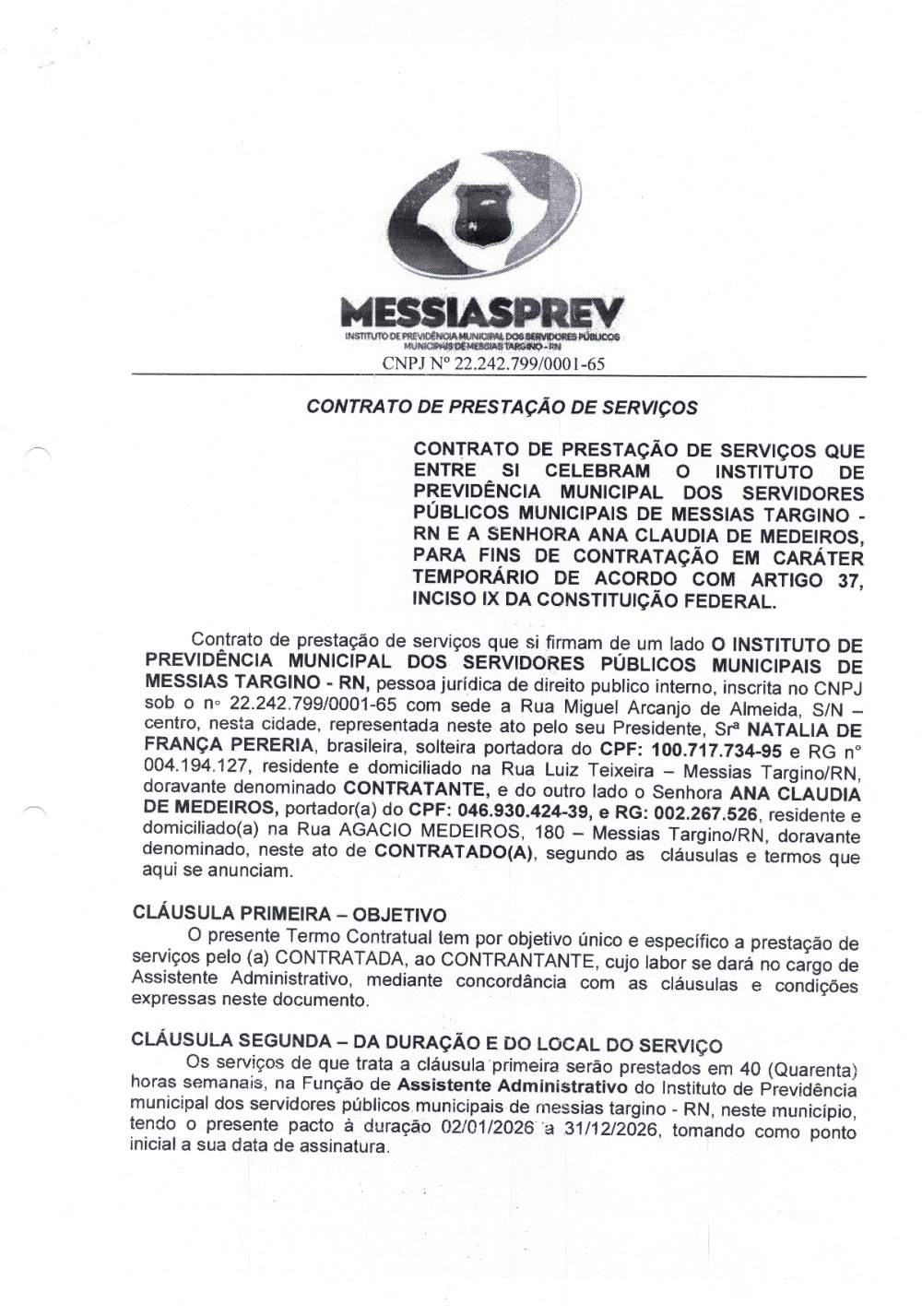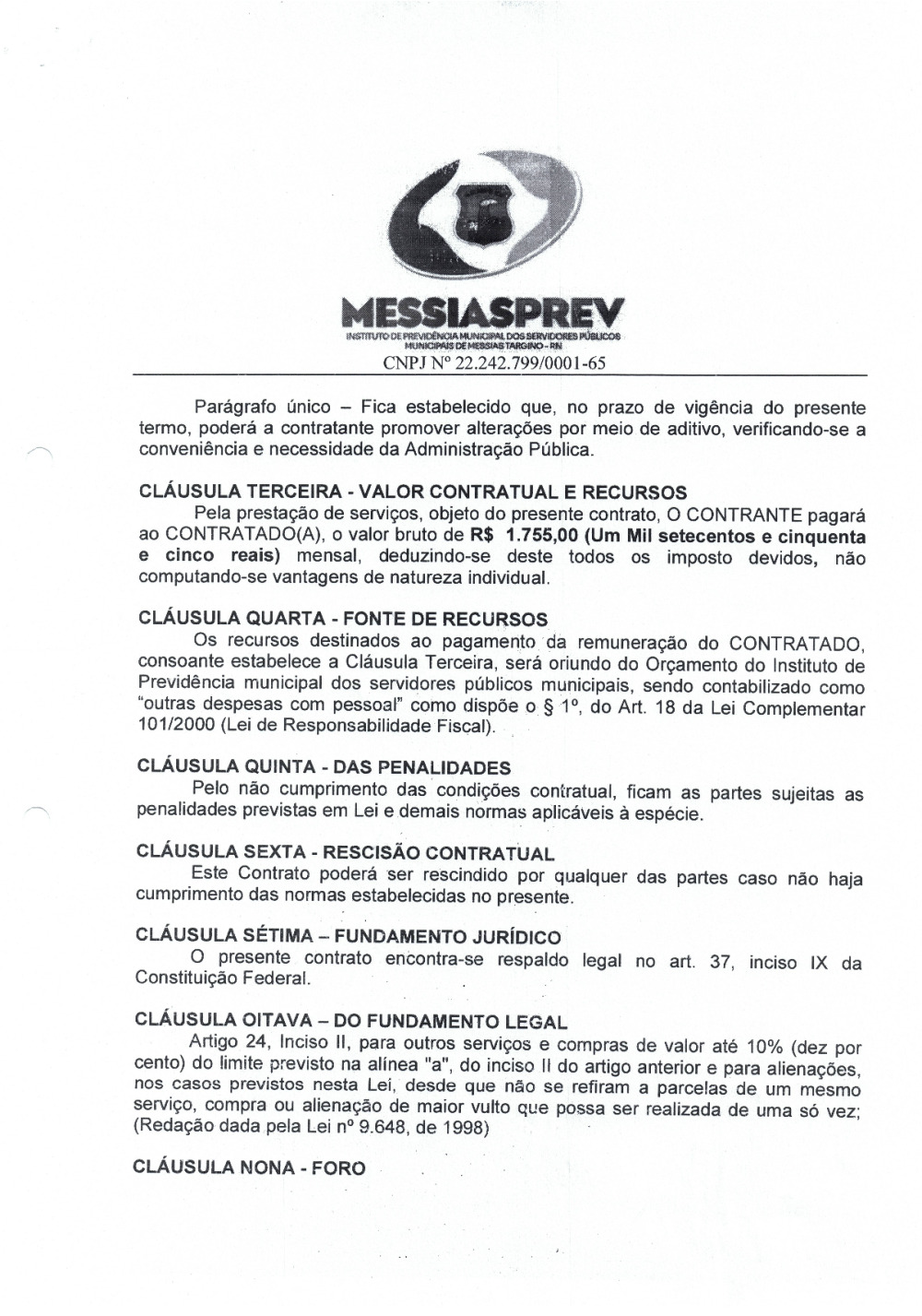 CONTRATO DE PRESTAÇÃO DE SERVIÇOS