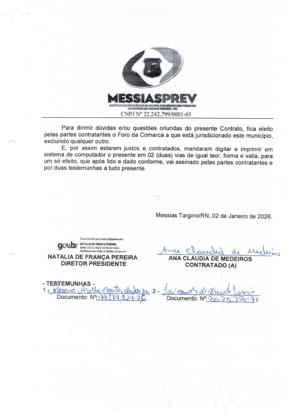 Conforme MP n° 2.200-2 de 24/08/2001, que institui a infraestrutura de chaves Públicas. Matéria Publicada no Diário Oficial do Município de Messias Targino/RN no dia - Edição 01464.