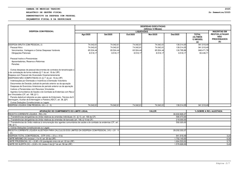 RETIFICAÇÃO - RELATÓRIO DE GESTÃO FISCAL - CAMARA MUNICIPAL DE MESSIAS TARGINO