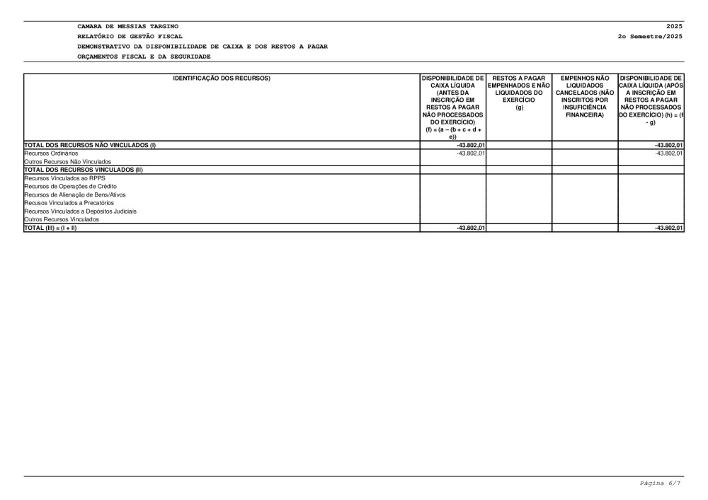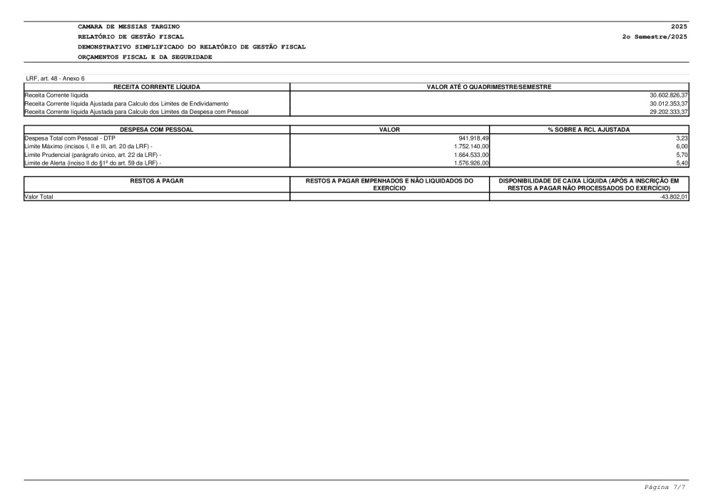 RETIFICAÇÃO - RETIFICAÇÃO - RREO 6º BIMESTRE - CAMARA MUNICIPAL DE MESSIAS TARGINO - RN