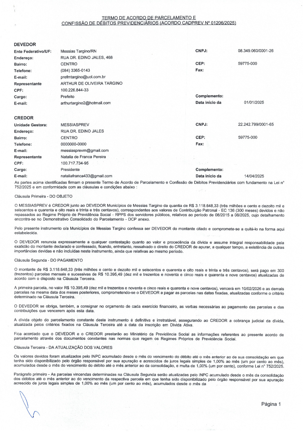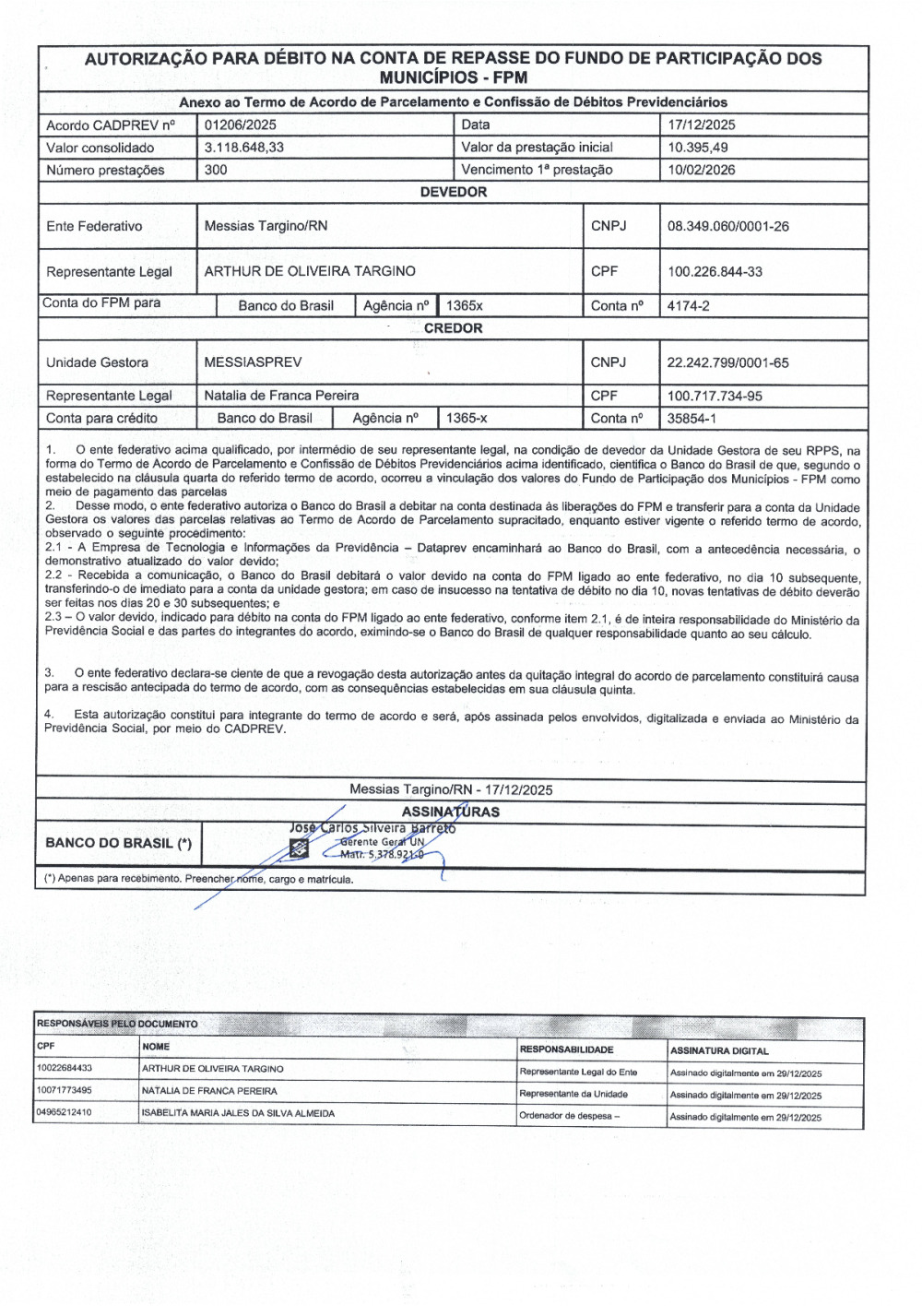 TERMO DE ACORDO DE PARCELAMENTO E CONFISSÃO DE DÉBITOS PREVIDENCIARIOS