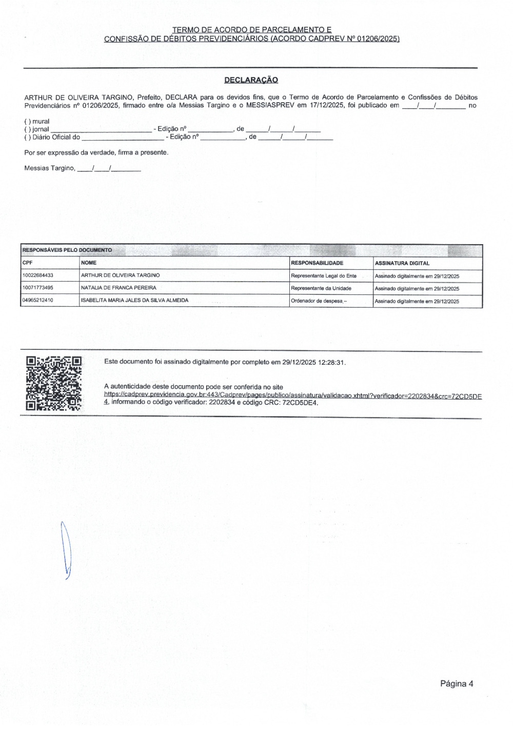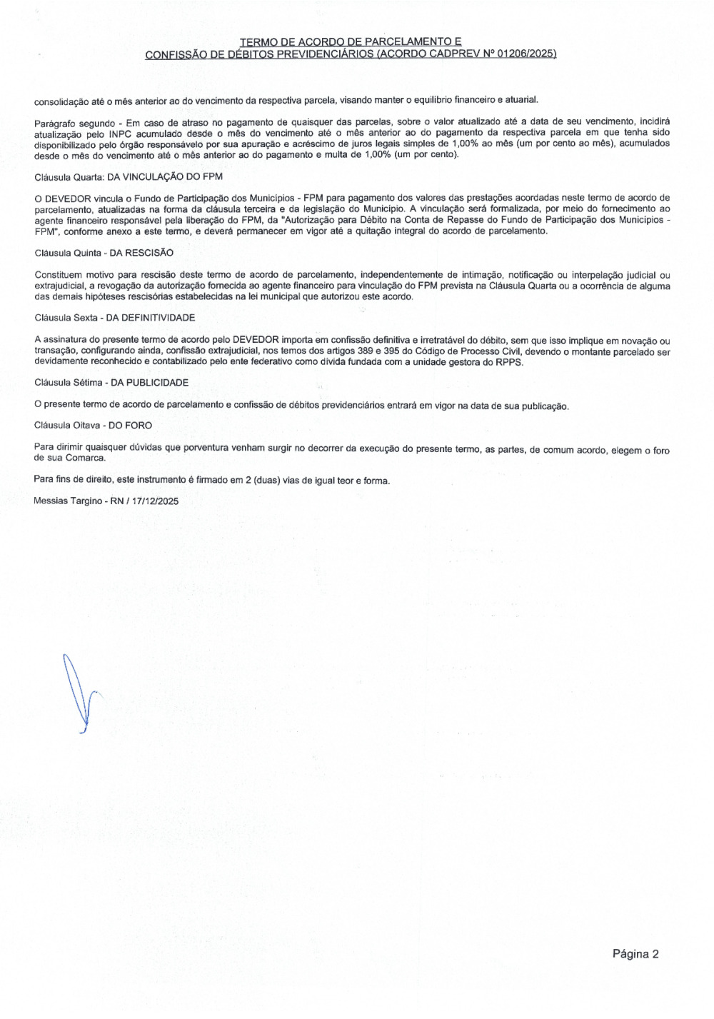 Conforme MP n° 2.200-2 de 24/08/2001, que institui a infraestrutura de chaves Públicas. Matéria Publicada no Diário Oficial do Município de Messias Targino/RN no dia - Edição 01464.