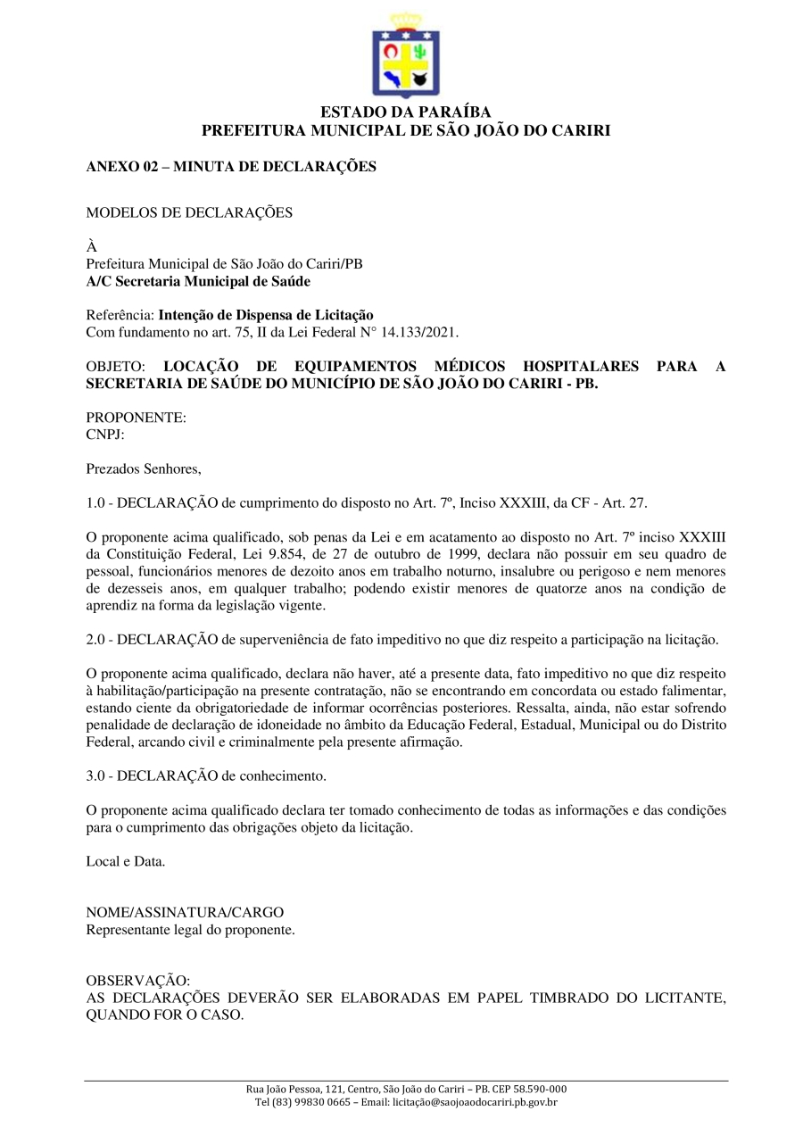 Conforme MP n° 2.200-2 de 24/08/2001, que institui a infraestrutura de chaves Públicas. Matéria Publicada no Diário Oficial do Município de São João do Cariri/PB no dia - Edição 01911.
