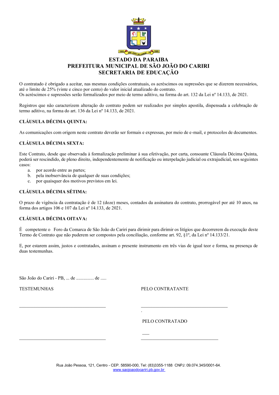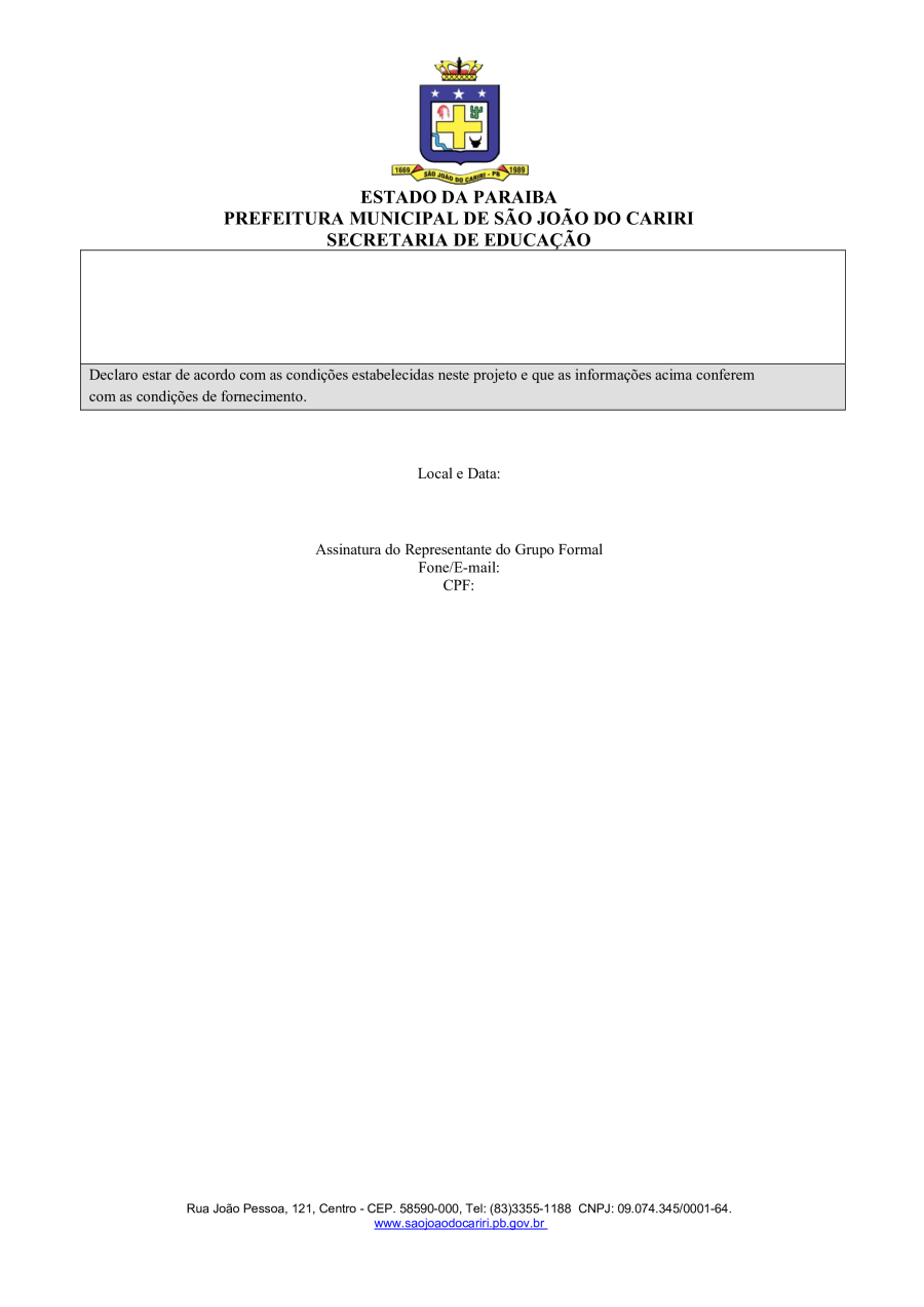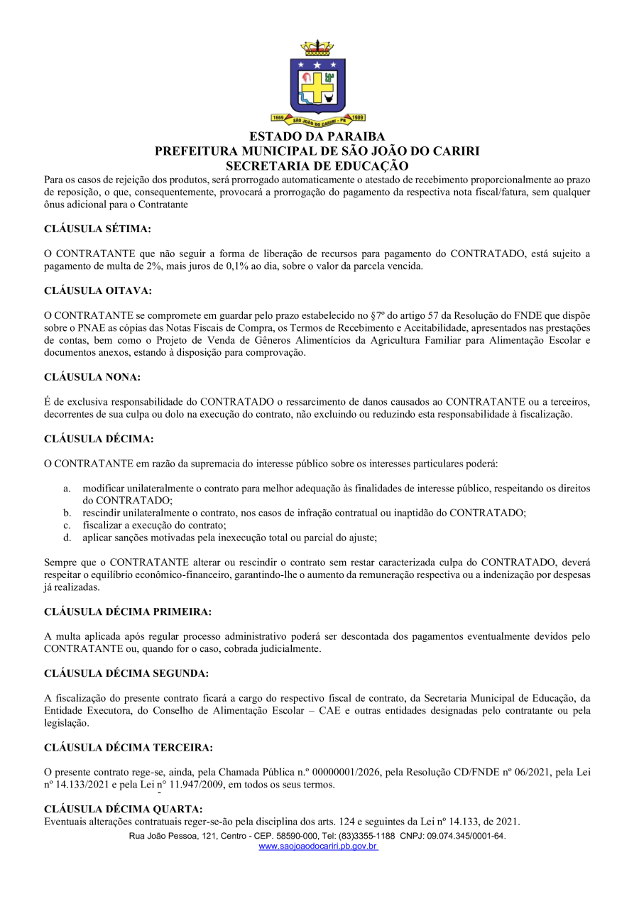Conforme MP n° 2.200-2 de 24/08/2001, que institui a infraestrutura de chaves Públicas. Matéria Publicada no Diário Oficial do Município de São João do Cariri/PB no dia - Edição 01909.