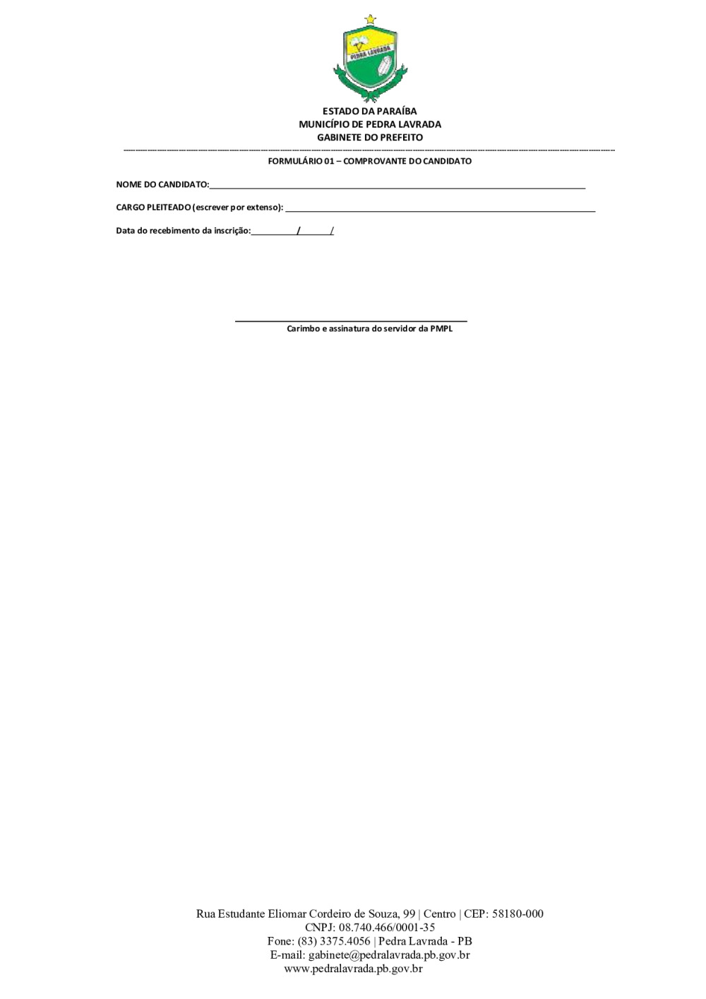 Conforme MP n° 2.200-2 de 24/08/2001, que institui a infraestrutura de chaves Públicas. Matéria Publicada no Diário Oficial do Município de Pedra Lavrada/PB no dia - Edição .
