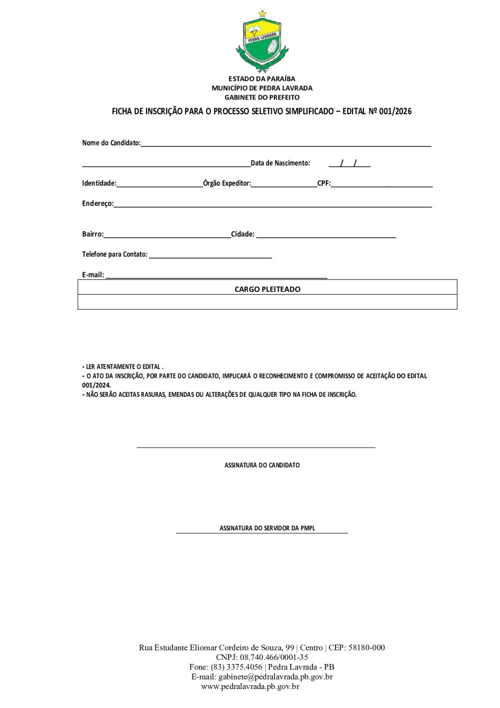PROCESSO SELETIVO SIMPLIFICADO - EDITAL N° 0001/2026