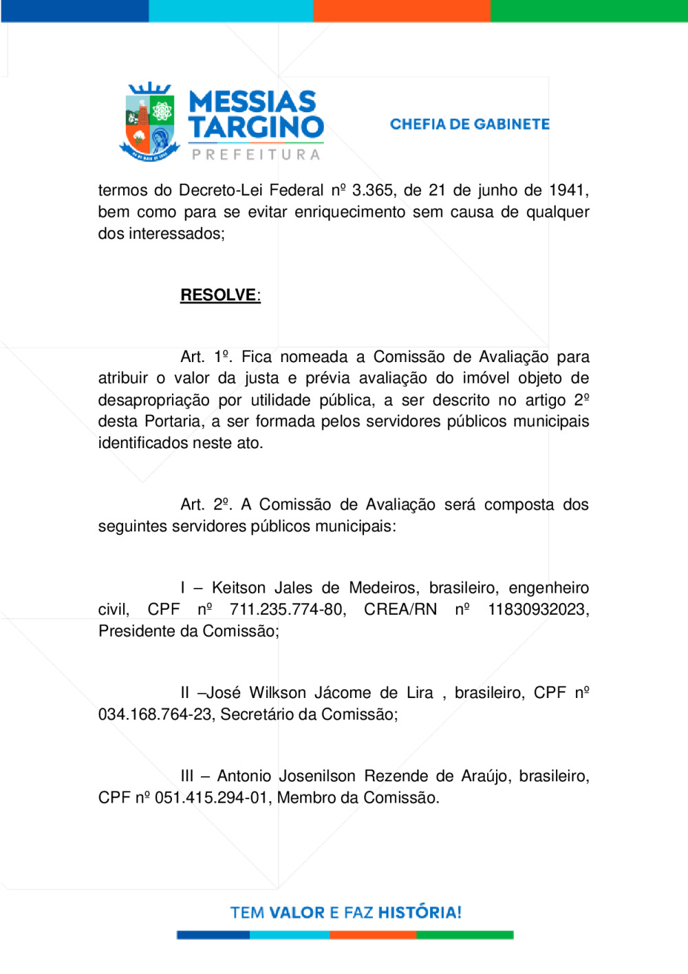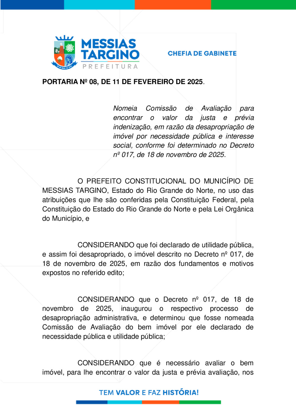 PORTARIA Nº08 - NOMEIA COMISSÃO DE AVALIAÇÃO DE IMÓVEL