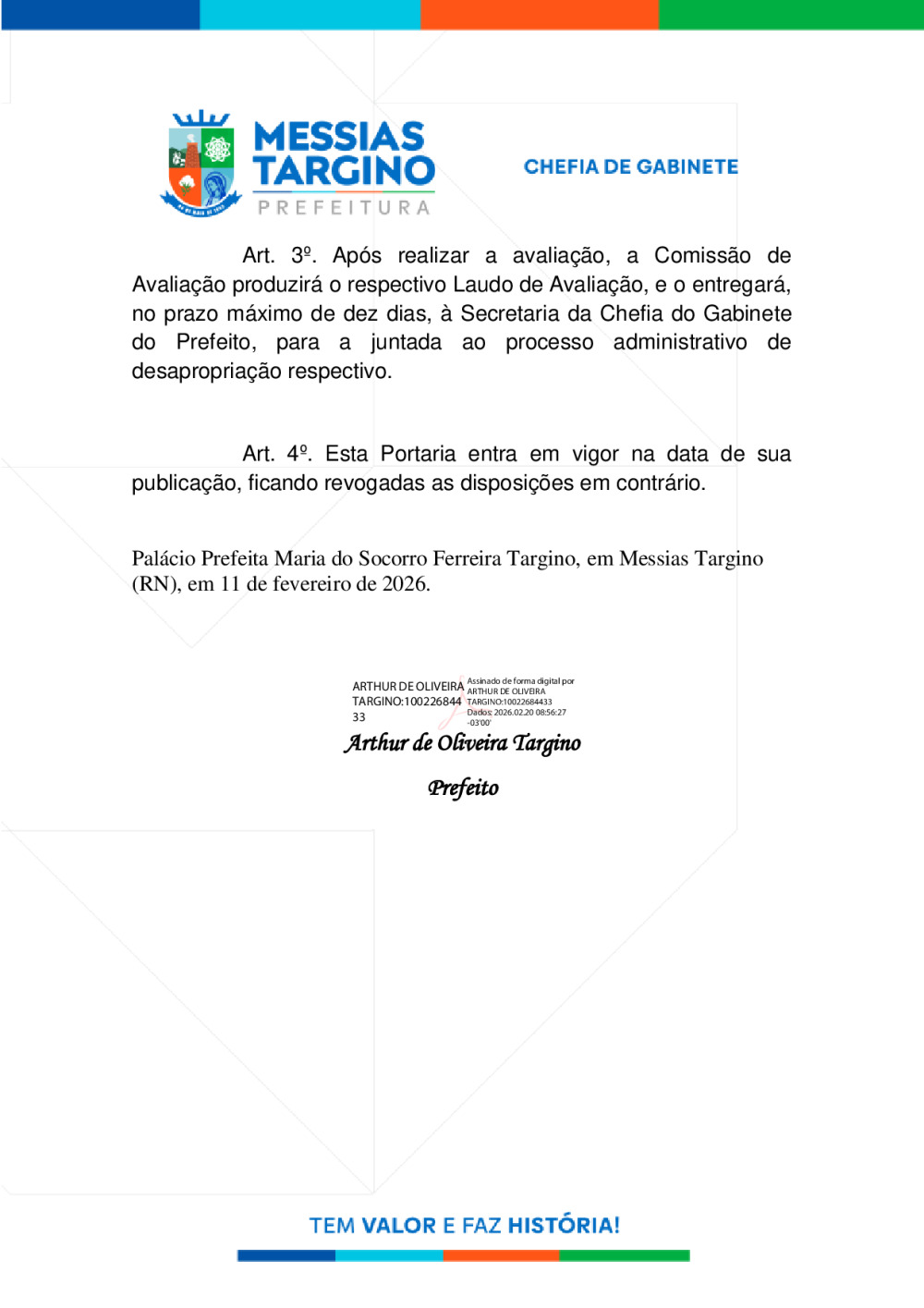 Conforme MP n° 2.200-2 de 24/08/2001, que institui a infraestrutura de chaves Públicas. Matéria Publicada no Diário Oficial do Município de Messias Targino/RN no dia - Edição 01480.