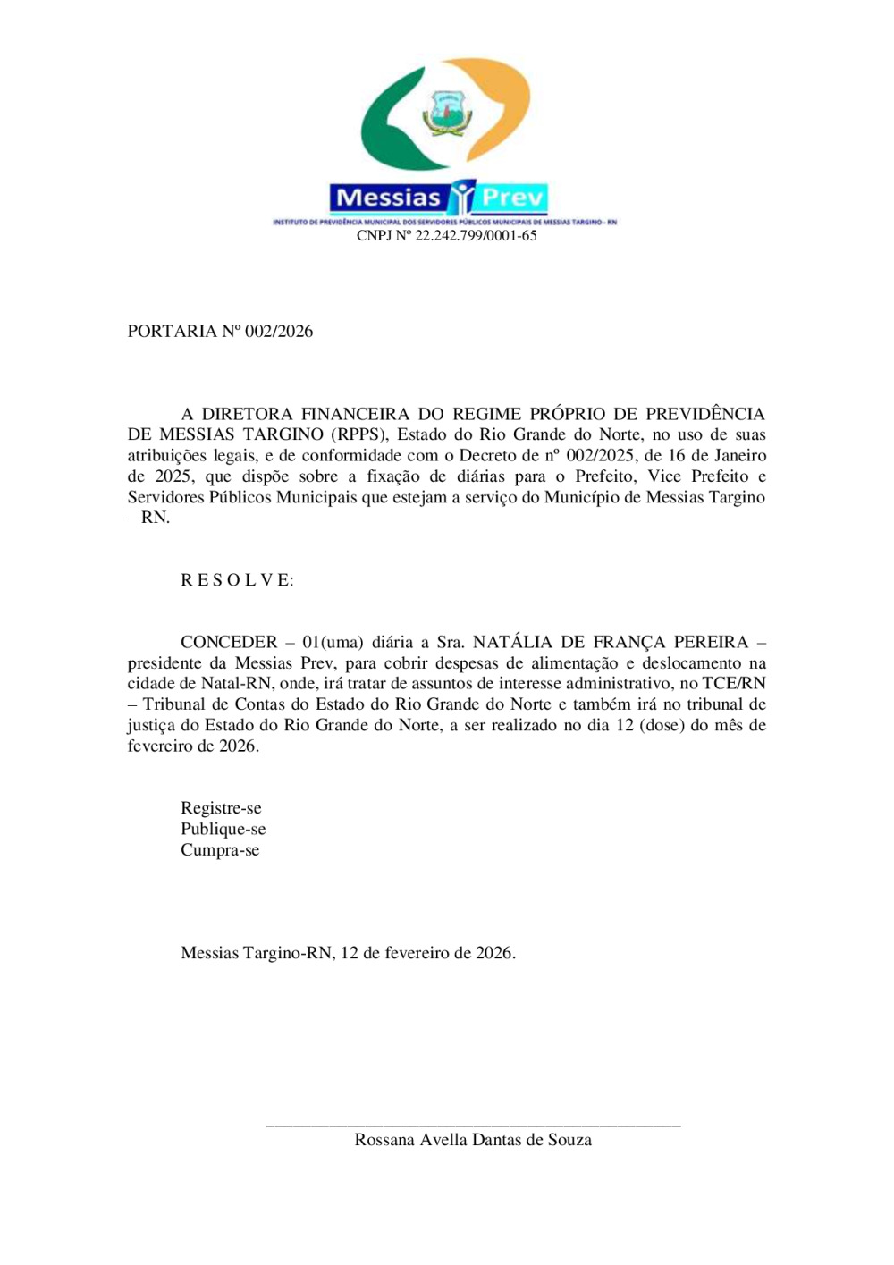 Conforme MP n° 2.200-2 de 24/08/2001, que institui a infraestrutura de chaves Públicas. Matéria Publicada no Diário Oficial do Município de Messias Targino/RN no dia - Edição 01474.