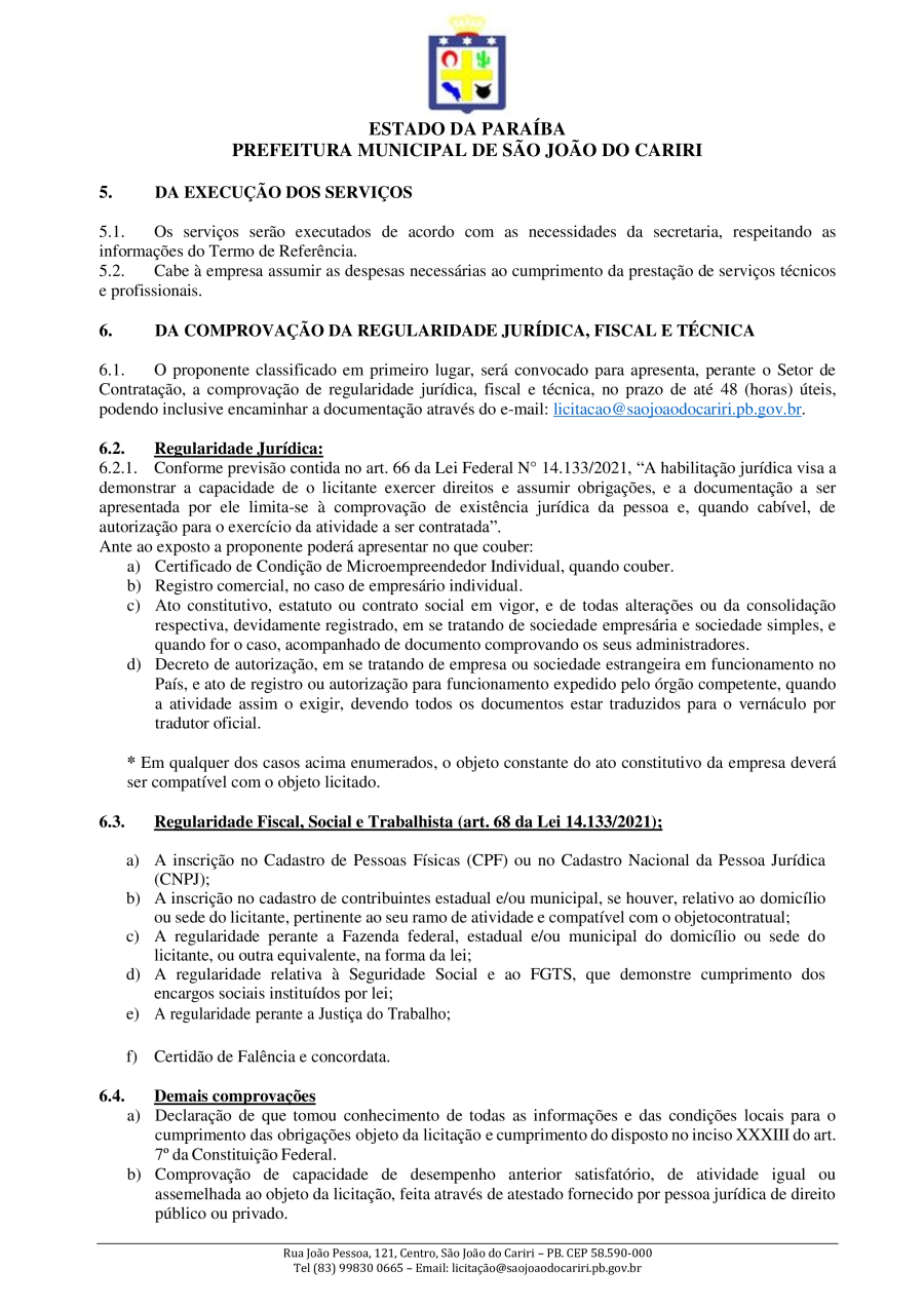 Conforme MP n° 2.200-2 de 24/08/2001, que institui a infraestrutura de chaves Públicas. Matéria Publicada no Diário Oficial do Município de São João do Cariri/PB no dia - Edição 01921.