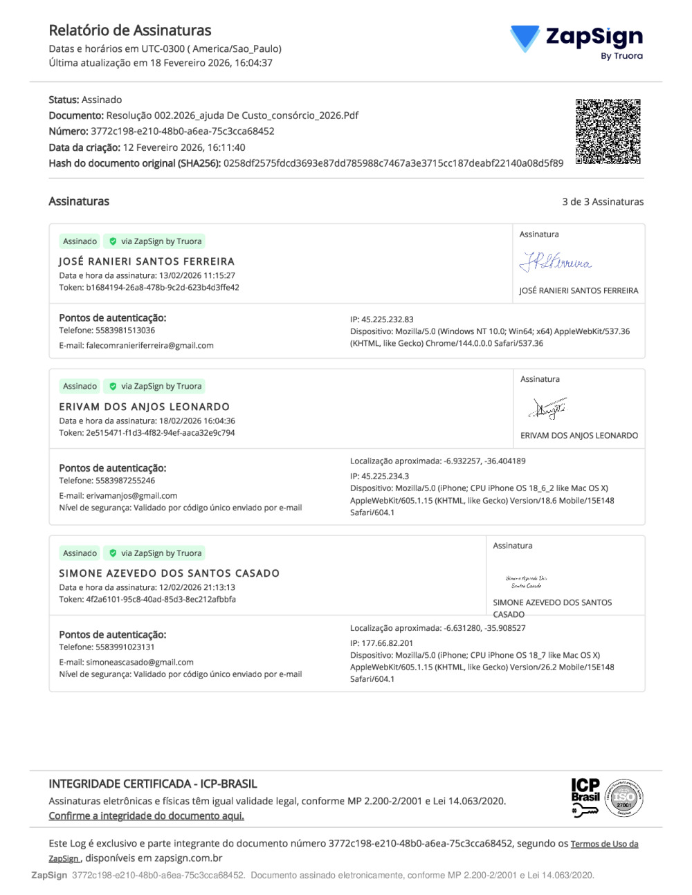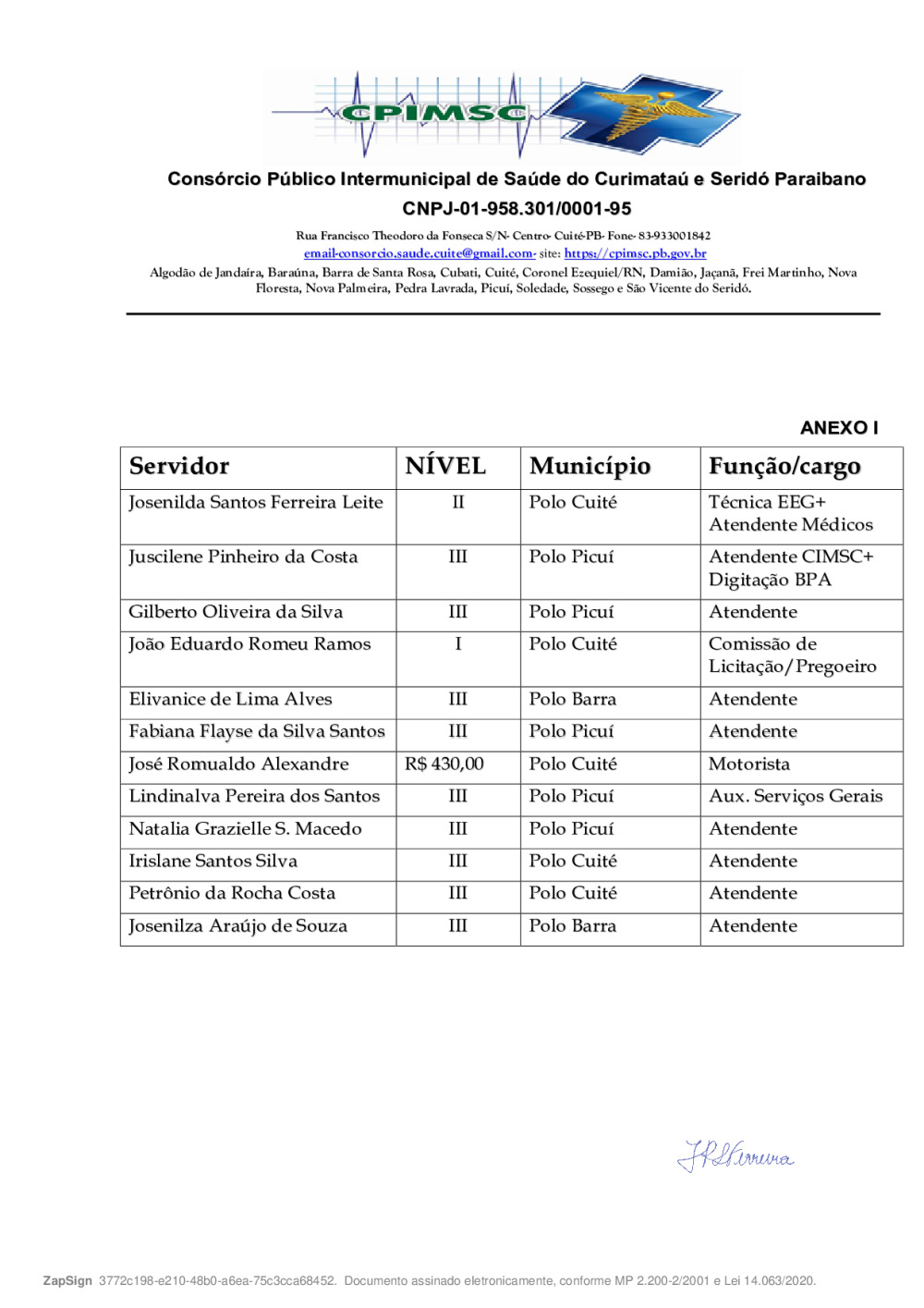 Conforme MP n° 2.200-2 de 24/08/2001, que institui a infraestrutura de chaves Públicas. Matéria Publicada no Diário Oficial do Consórcio Intermunicipal de Saúde do Curimataú e Seridó Paraibano/PB no dia - Edição 01411.