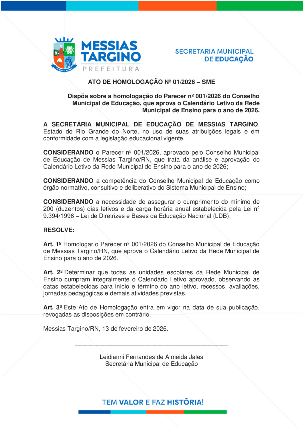 ATO DE HOMOLOGAÇÃO Nº 01/2026 -SME
