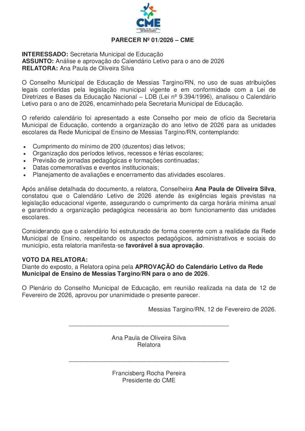 Conforme MP n° 2.200-2 de 24/08/2001, que institui a infraestrutura de chaves Públicas. Matéria Publicada no Diário Oficial do Município de Messias Targino/RN no dia - Edição 01479.